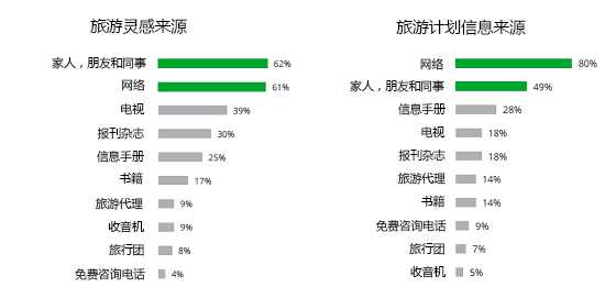 当休闲旅客位于某个目的地时,他们之中的58%会依靠在线资源来研究目的地活动,以下是信息渠道的来源排名:
