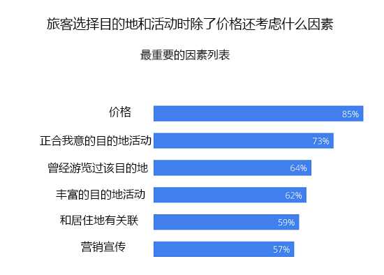 下面这幅图展示了休闲旅客在选择目的地时考虑的关键因素: