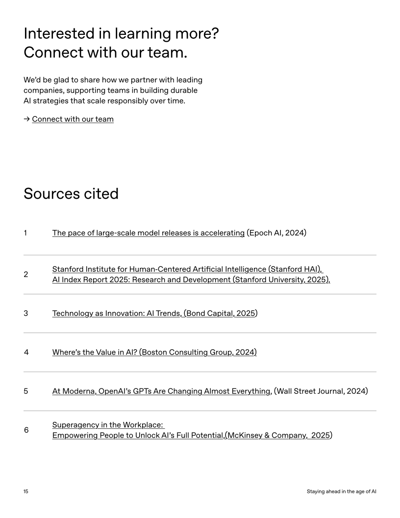 总体来看,AI技术已进入商业化加速阶段,其降本增效效应与组织重构压力并行。未来三到五年内,将出现两极分化:能够迅速对齐战略、强化组织学习并在治理和创新间灵活平衡的企业,将构筑持久竞争优势;而缺乏机制设计、依赖零散试点的组织,则可能在普及浪潮中被边缘化。换言之,AI已不仅是一种工具,而是组织运营逻辑的全新操作系统。