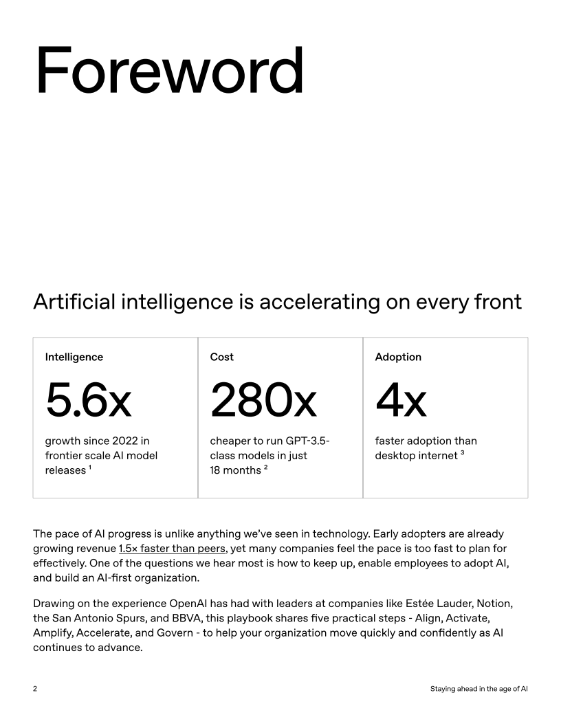 人工智能的发展速度远超以往任何技术,从基础设施到商业应用都在加速变革。报告显示,自2022年以来,前沿大模型的发布数量增加了5.6倍,运行类似GPT-3.5水平模型的成本在18个月内下降了280倍,AI的普及速度是互联网桌面的4倍。这些宏观趋势不仅推动了企业的生产力,也使早期采用者收入增速较同行高出1.5倍。然而,企业在快速跟进与风险治理之间仍存在显著的平衡难题。
