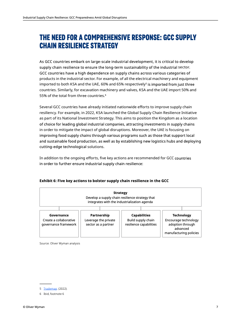 海湾地区的供应链韧性建设不仅是当前应对全球不确定性的必要举措,更是支持工业大规模发展的基石。在全球经济复杂多变的背景下,GCC各国应采用多维度、多策略的综合方法,通过本地化与国际化并行、技术创新与政策支持结合,构建具备快速响应和恢复能力的供应链体系。未来,供应链韧性将成为衡量国家安全和经济可持续发展的关键指标,海湾国家对此的战略布局预示其工业竞争力将得到持续强化。