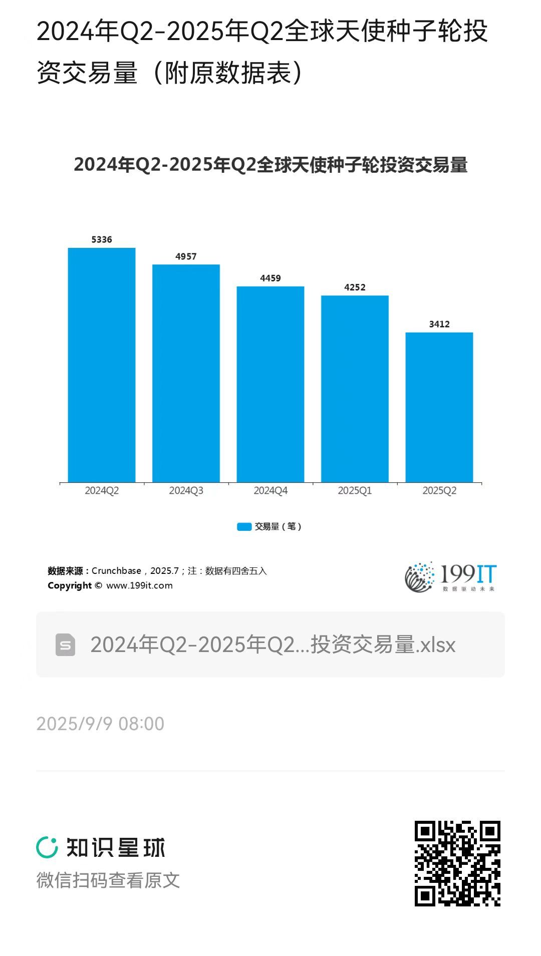 2024年Q2-2025年Q2全球天使种子轮投资交易量(附原数据表) ​​​