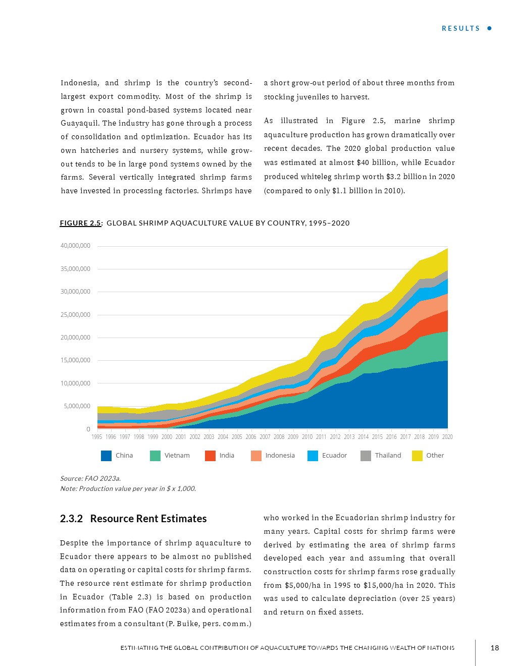报告的核心方法是测算“资源租金”,即从总产值中剔除所有生产成本、劳动力成本和资本折旧后的净收益,以此衡量水产养殖业对经济的真实贡献。研究发现,在多个主产国,该行业的财富创造能力十分可观。例如,挪威的三文鱼养殖业在2020年创造了超过20亿美元的资源租金,而厄瓜多尔的对虾养殖业同年也产生了超过15亿美元的租金。