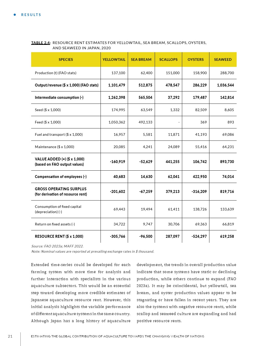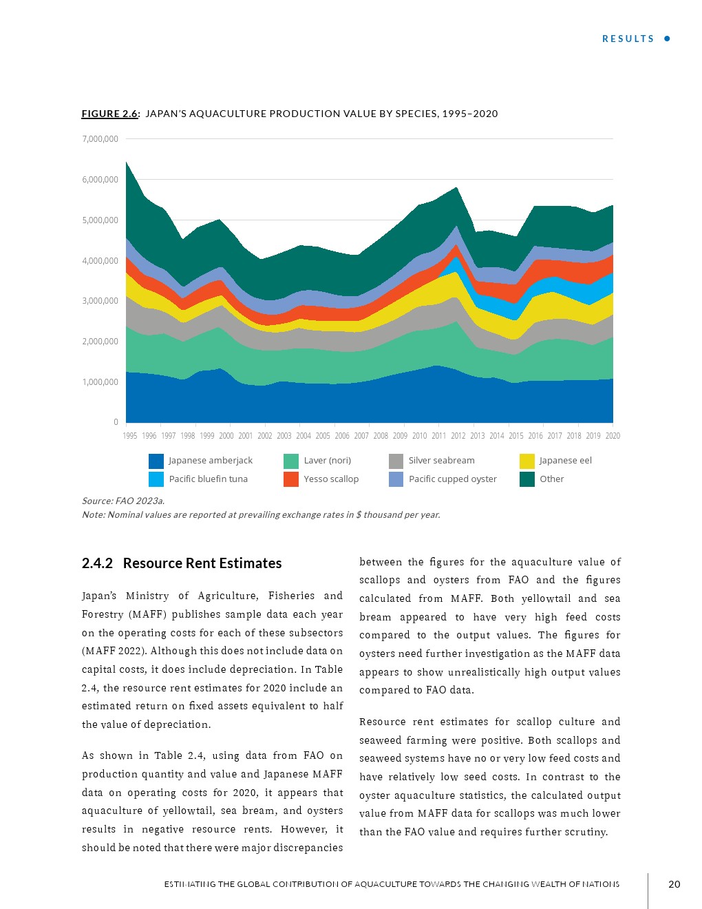然而,并非所有水产养殖活动都能创造高额回报。研究显示,行业内部存在显著差异。日本的黄尾鱼和鲷鱼养殖因高昂的饲料成本而呈现负资源租金,但其扇贝和海藻养殖却利润丰厚,2020年合计创造了约9亿美元的租金。这表明,物种选择、养殖技术和市场条件共同决定了最终的经济效益。