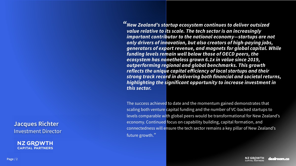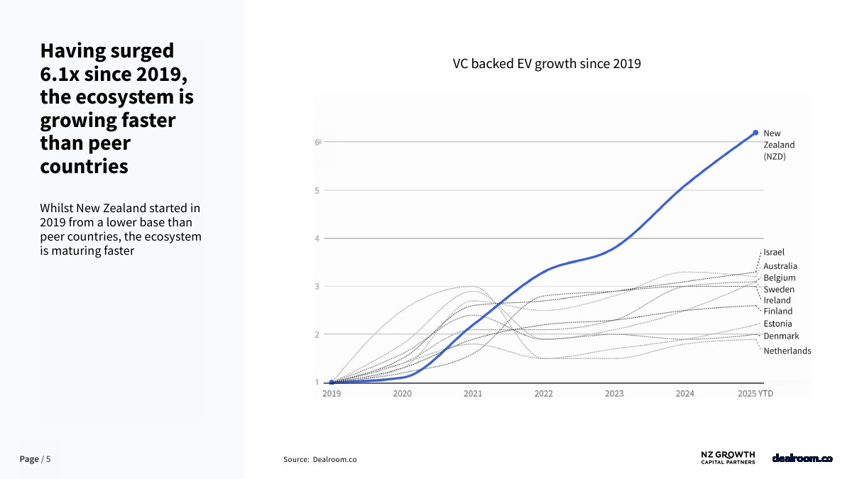 自2019年以来增长6.1倍,该生态系统的增长速度超过同类国家。尽管新西兰在2019年的起点低于同类国家,但生态系统成熟速度更快。