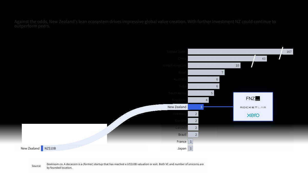 尽管面临挑战,新西兰的精简生态系统推动了令人瞩目的全球价值创造。通过进一步投资,新西兰可能继续超越同行。