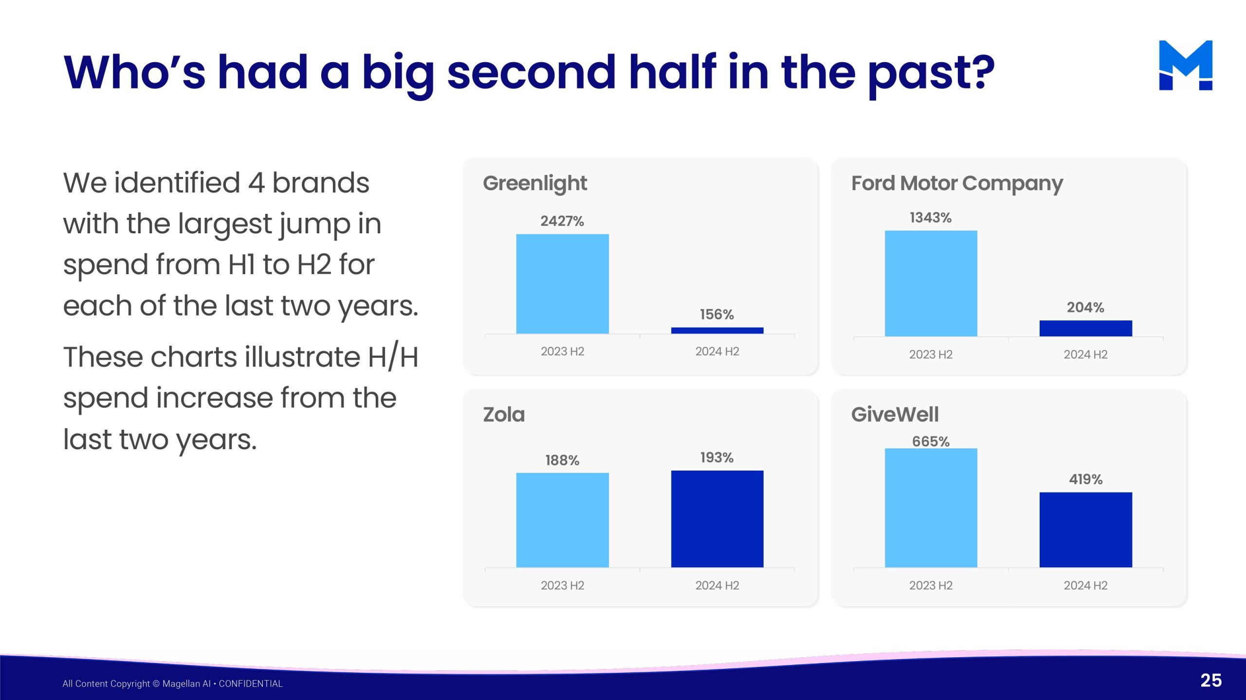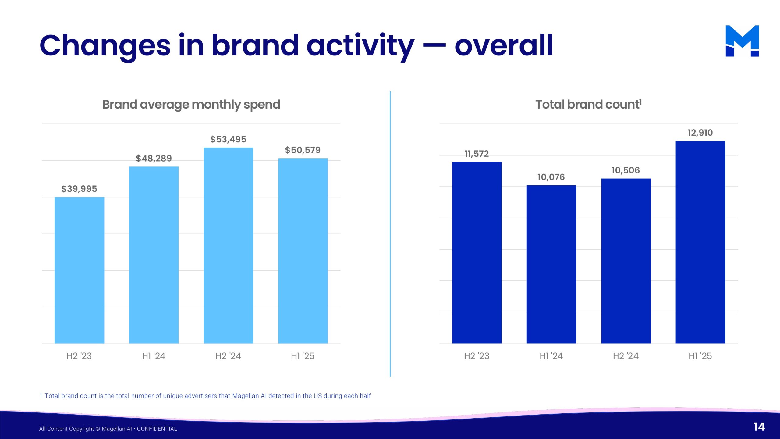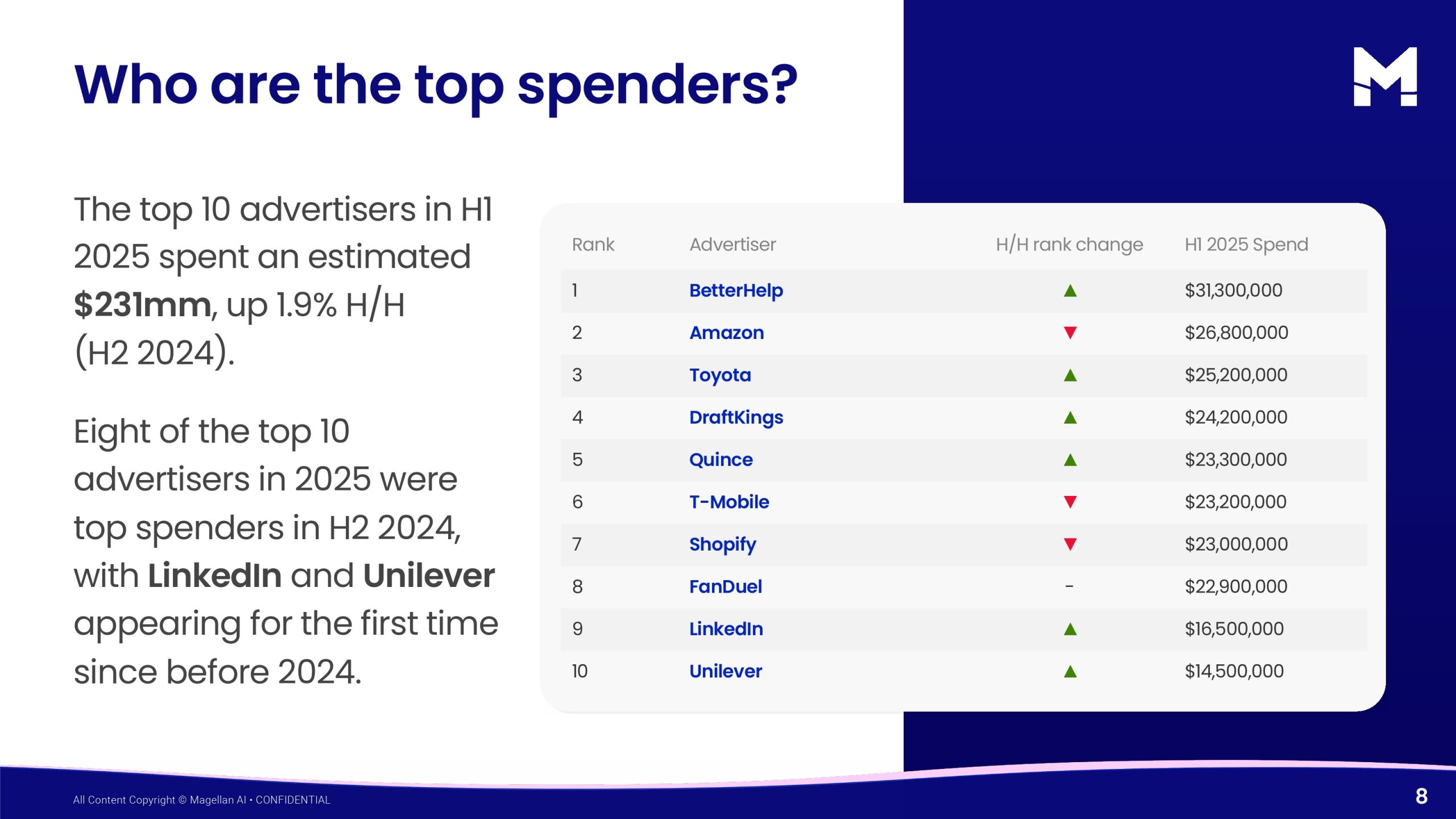 2025年前10大广告主中有8家是2024年下半年的主要支出者,LinkedIn和Unilever是自2024年以来首次出现。
