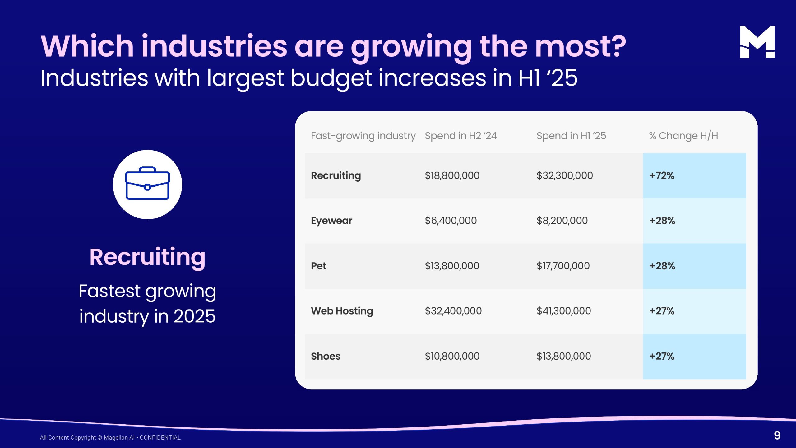 2025年上半年预算增加最多的行业,招聘、眼镜、宠物、网络托管、鞋类
