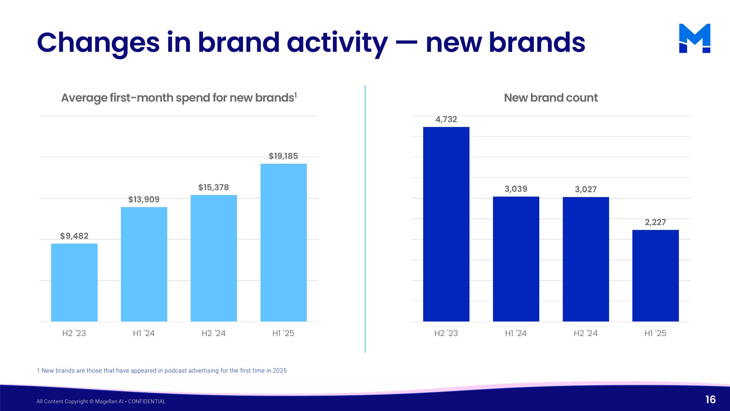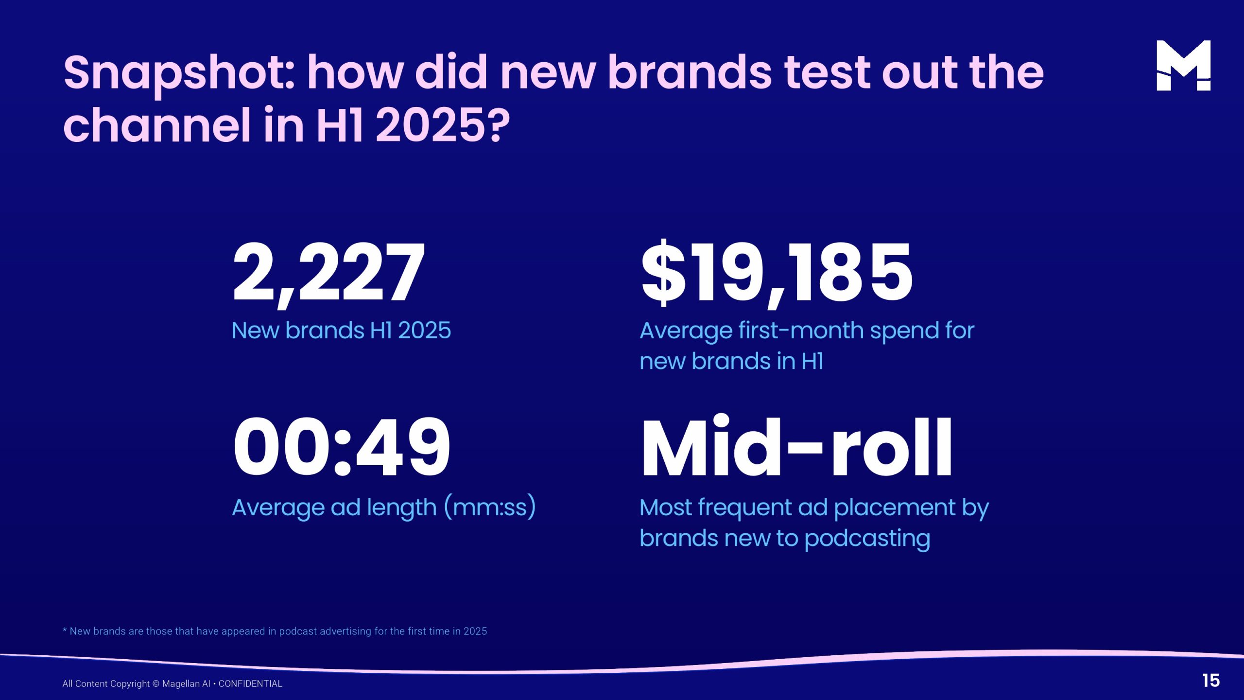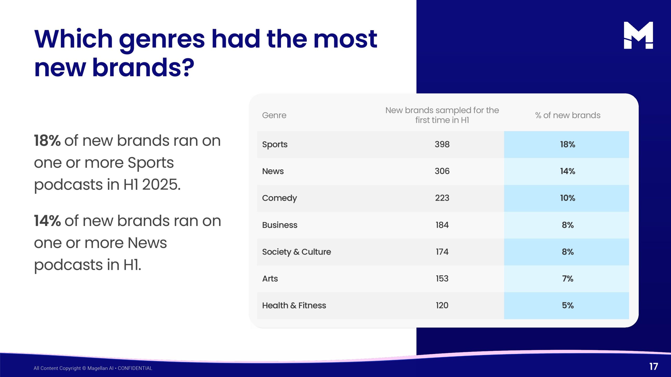 2025年上半年,18%的新品牌在一个或多个体育播客上投放广告。