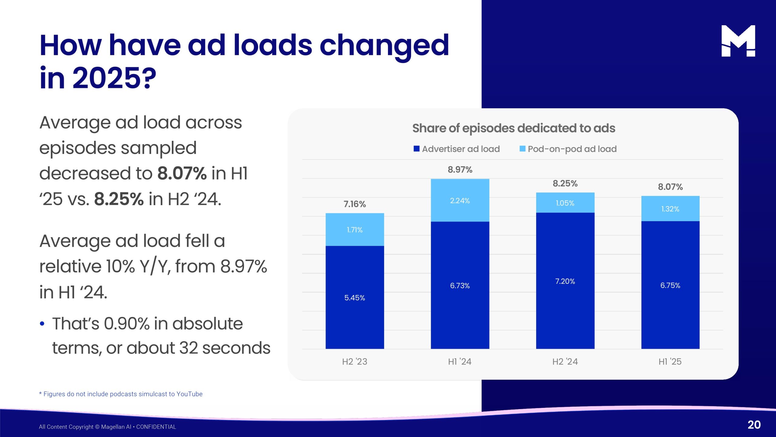 采样剧集的平均广告负载在2025年上半年下降至8.07%,而2024年下半年为8.25%。