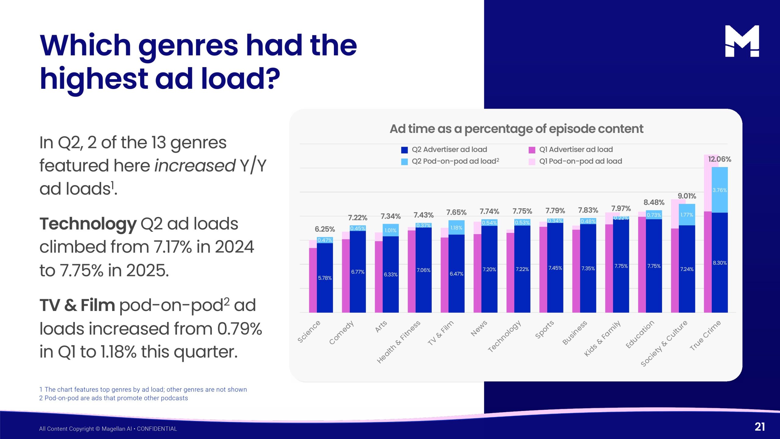 电视与电影类播客推广播客广告负载从第一季度的0.79%增长到本季度的1.18%。