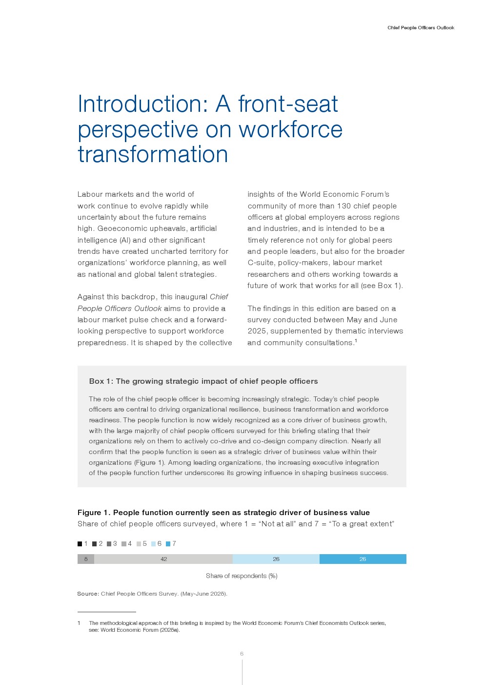 基于2025年年中的一项调查以及与世界经济论坛130多位首席人力官的磋商,报告重点阐述了人力资源职能在塑造组织韧性、业务转型和增长方面日益增强的战略作用。