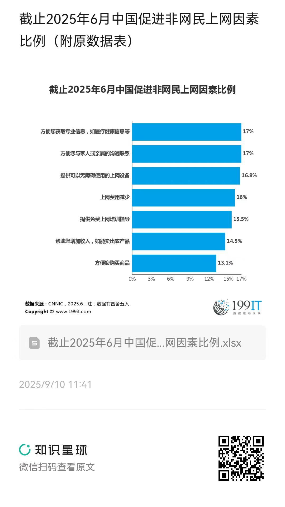 截止2025年6月中国促进非网民上网因素比例(附原数据表) ​​​
