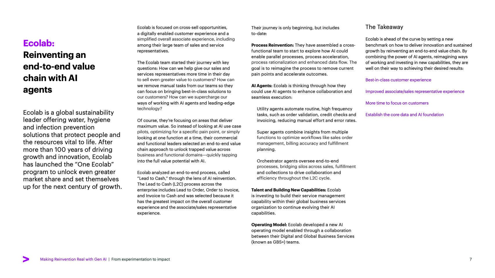 数字核心的构建是生成式AI实现长期价值的基础。领先企业倾向于采用具备智能代理功能的灵活架构和基于独有数据的竞争优势战略。安全且高度可扩展的云端架构使得复杂流程得以自动化,数据中台和负责任的AI治理框架有效确保合规与风险管控。典型案例如能源领域的Sempra公司,通过现代化数字核心系统,AI分析效率提升近90%,资产远程诊断更精准,客户服务利用生成式AI助手大幅缩短响应时间。