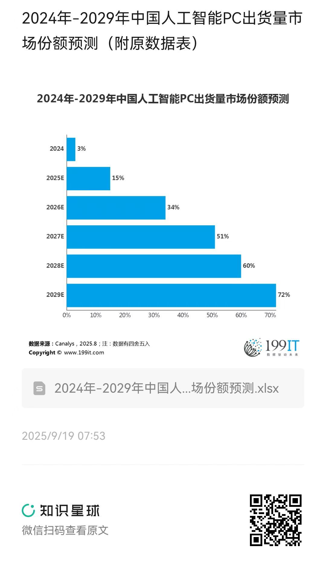 2024年-2029年中国人工智能PC出货量市场份额预测(附原数据表) ​​​