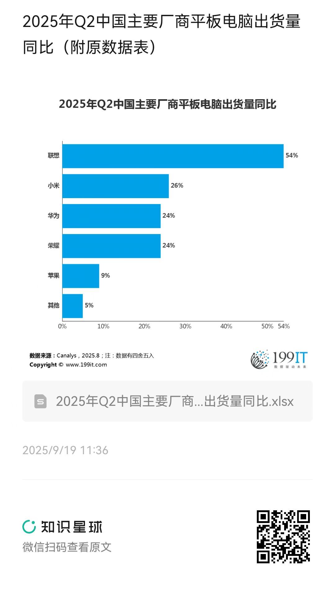 - 2025年Q2全球主要厂商平板电脑出货量同比(附原数据表)