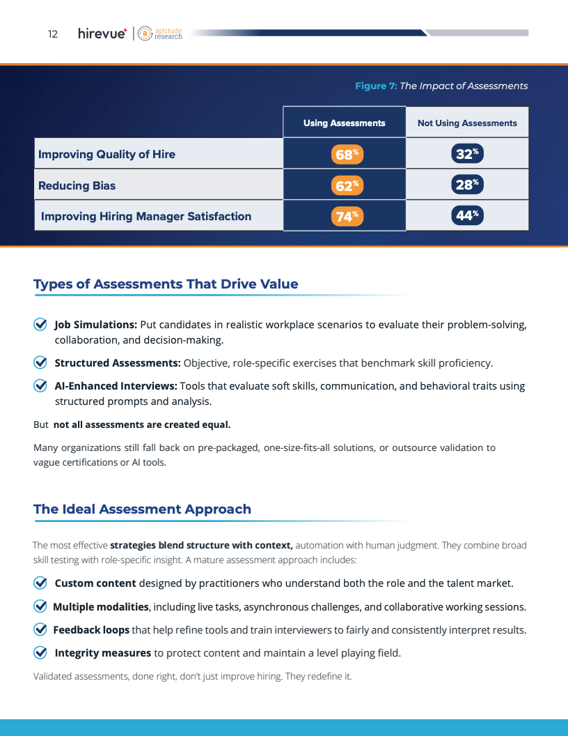 技能测评对招聘质量、公平性及招聘经理满意度有显著积极影响。与传统依赖经验和学历的方式相比,结构化面试、技能测试和岗位模拟提供了更可靠的用人依据。测评手段涵盖技术岗位广泛应用的编码测试和仿真,顾客服务、销售等岗位逐渐通过情境模拟和行为评估提升沟通及决策能力,HR等岗位重视战略思维和适应性评估,运营岗位则注重流程效率和数字素养。