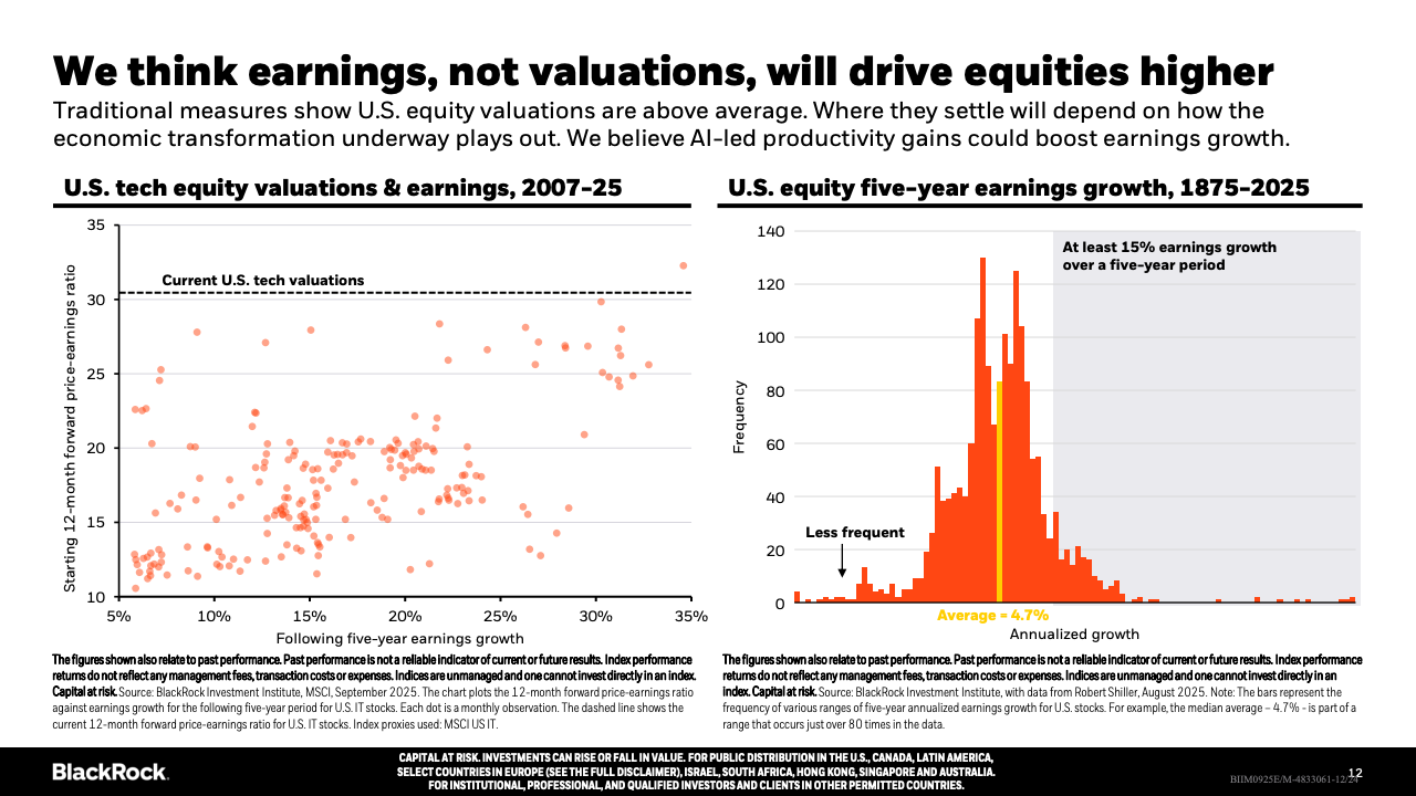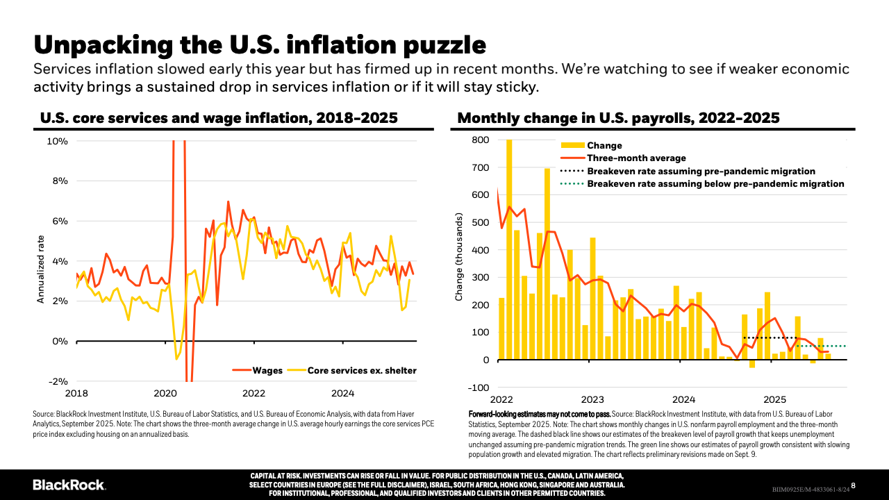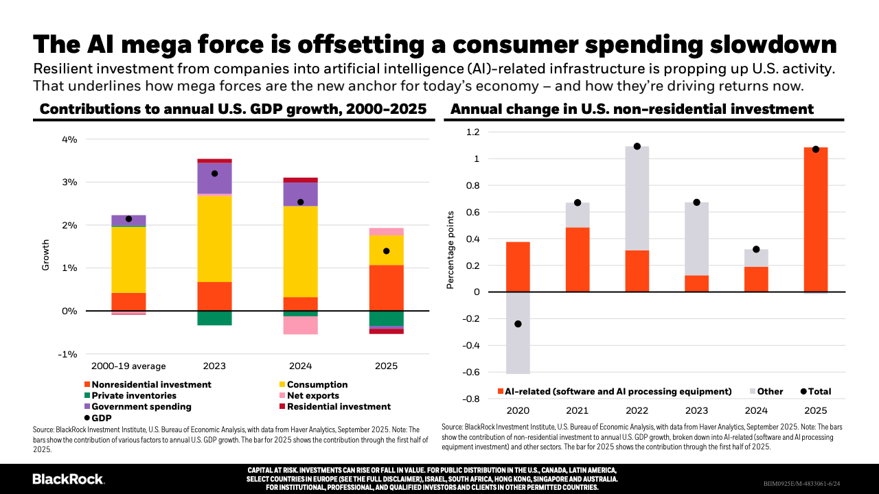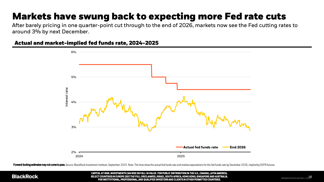 企业投资方面,AI相关领域的软硬件投入迅速增加,有力推动美国经济活动,部分抵消了消费者支出放缓的影响。私募市场融资日益活跃,企业尤其是中小企业更依赖私募资金,公共市场融资规模及上市公司数量均呈下降趋势,显示资本市场结构在发生深刻变革。地缘政治和贸易政策不确定性依旧存在,导致投资者偏好更为谨慎,增大了市场的波动性和分化。