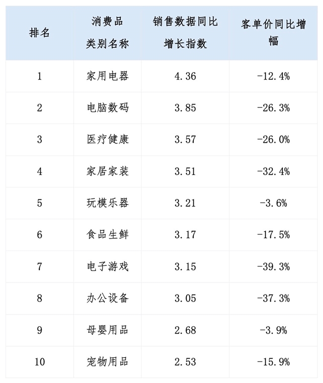 高温、年中大促与健康需求是主要驱动力。家用电器消费数据增长指数以4.36位居首位,“大家电”销售额同比增长87.1%,高温天气叠加“节能焕新季”活动,显著拉动了空调、冰箱等季节性产品需求;电脑数码消费数据增长指数为3.85,其中“影音播放”品类销售额同比增长71.4%,4K投影、全景声音响等高端设备价格下探,推动大众影音娱乐升级,年中大促的置换优惠进一步刺激销量增长;医疗健康增长指数为3.57,“保健器械”销售额同比激增87.4%,健康消费补贴政策与套装促销降低购买门槛,加速了健康管理设备的普及,客单价同比下降26.0%,普惠化趋势显著。此外,玩模乐器、电子游戏等品类同样表现稳健,反映出定制化与娱乐化需求的持续韧性。