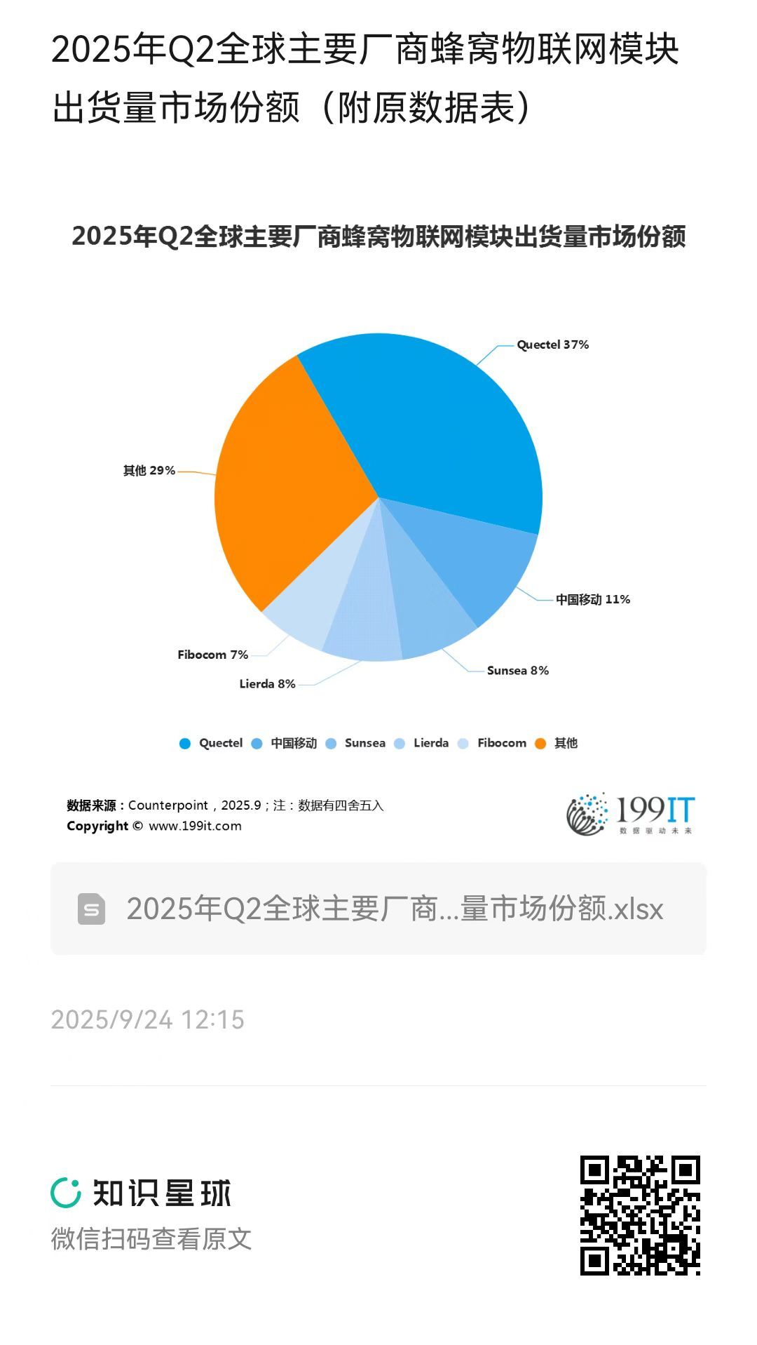 - 2023年Q2全球主要蜂窝物联网模块出货量市场份额(附原数据表)