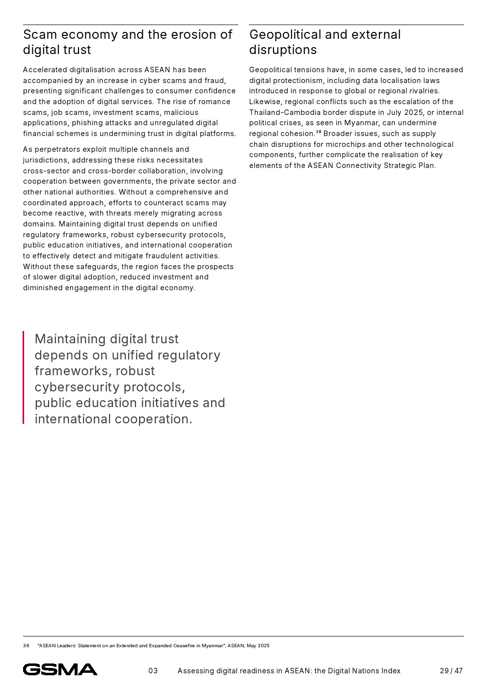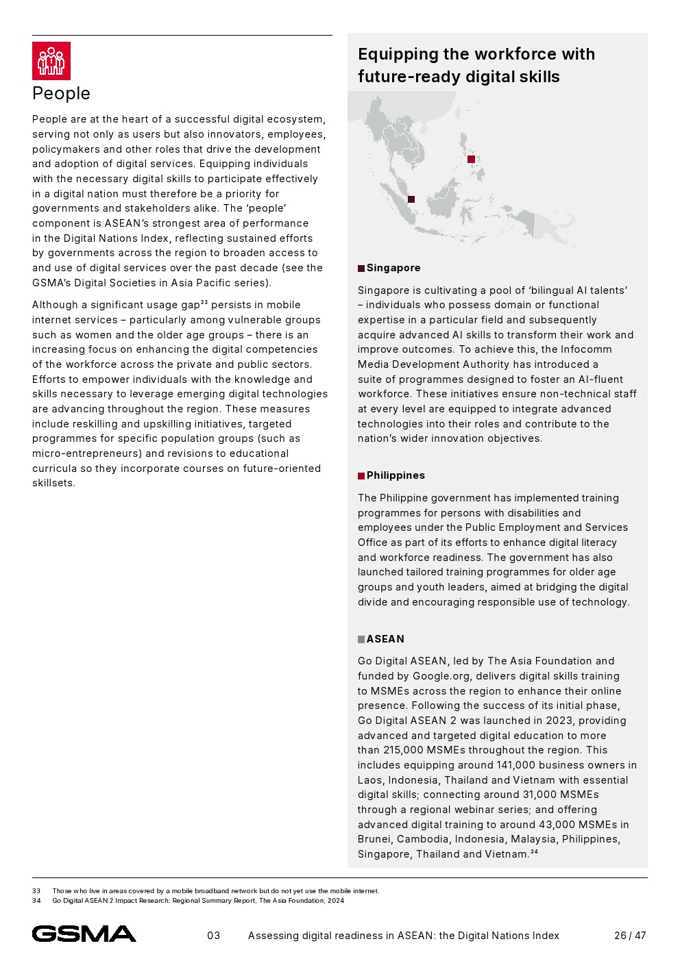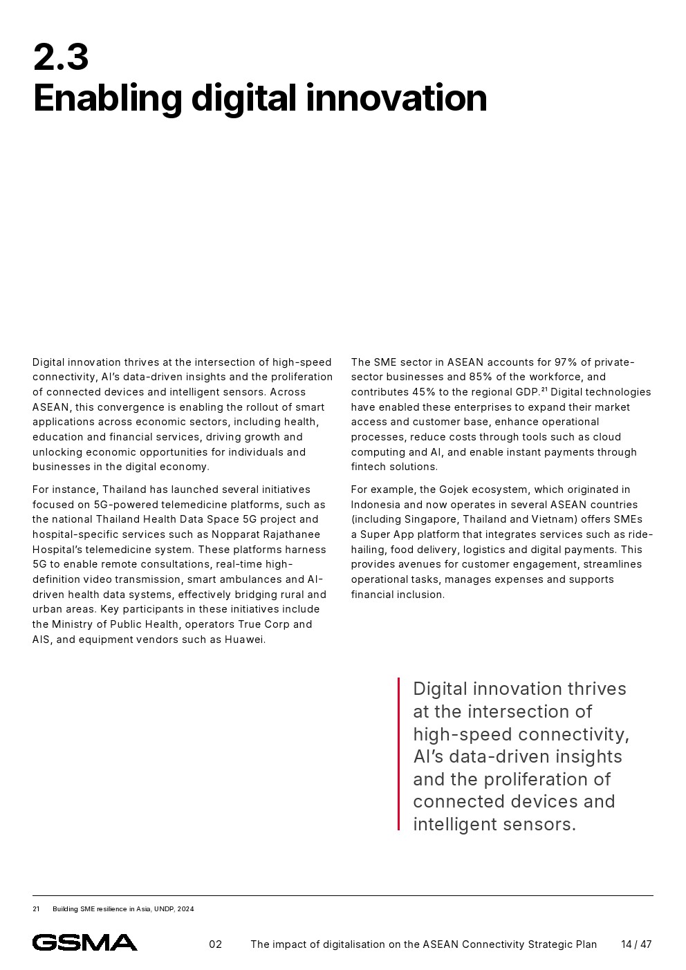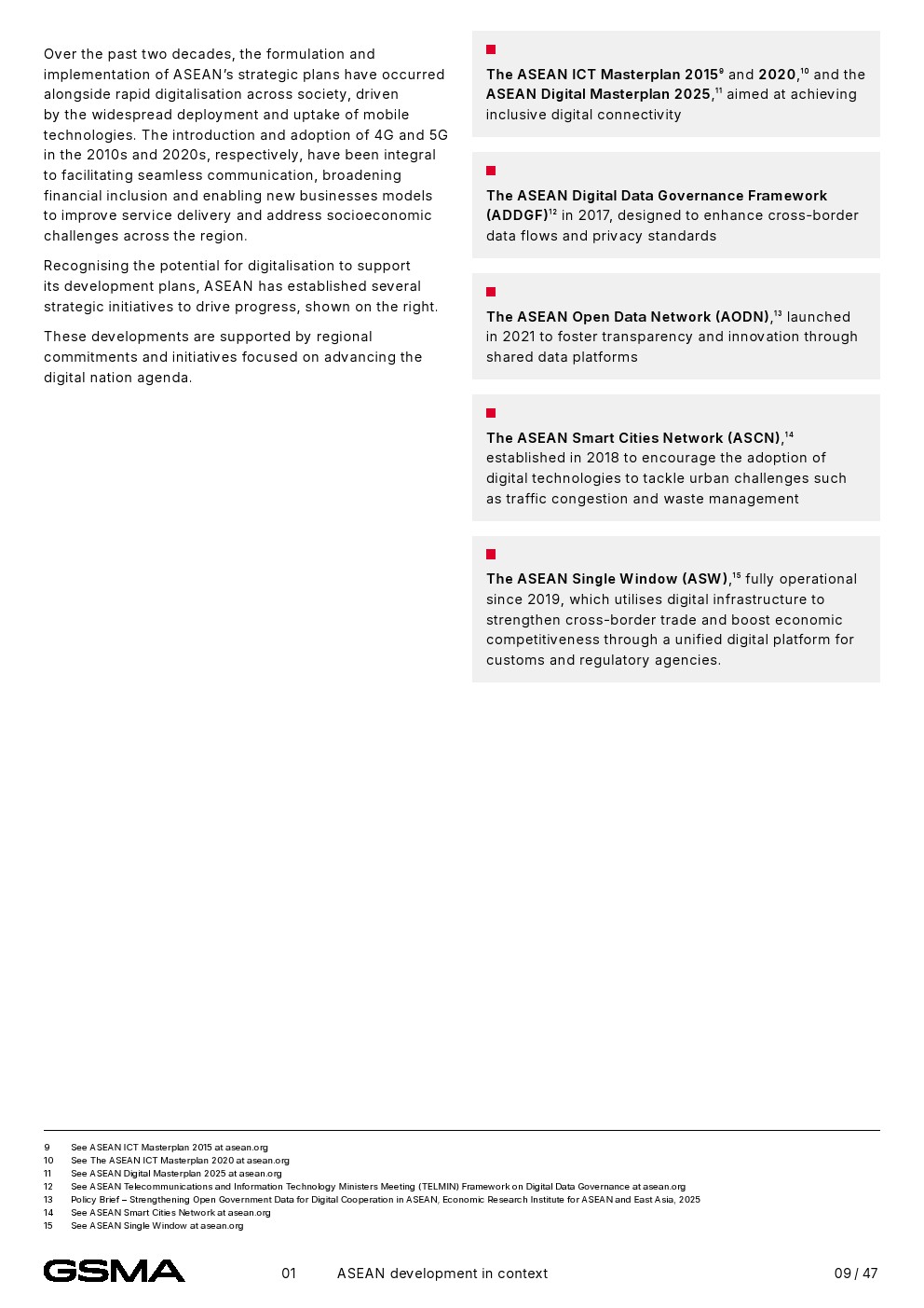 该报告基于GSMA智库的数字国家指数,追溯了东南亚国家联盟自2000年以来的转型,强调了该集团经济总量从7370亿美元增长至2024年的超过4万亿美元——这一增长可通过数字创新实现倍增。