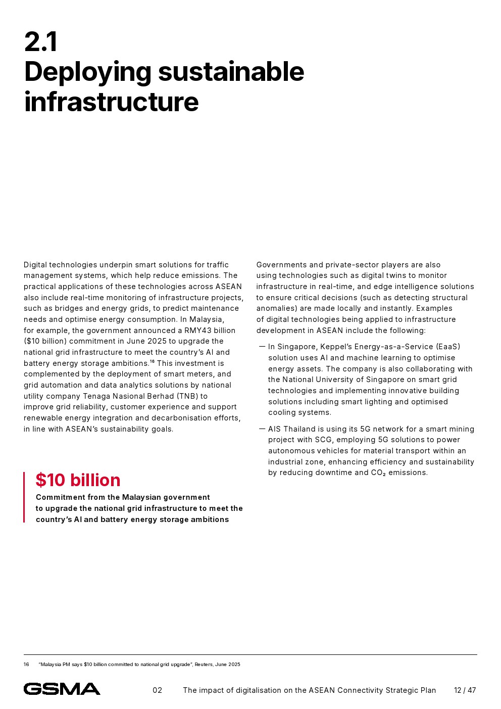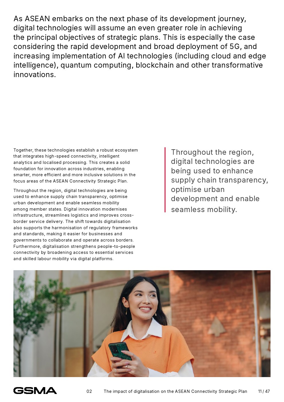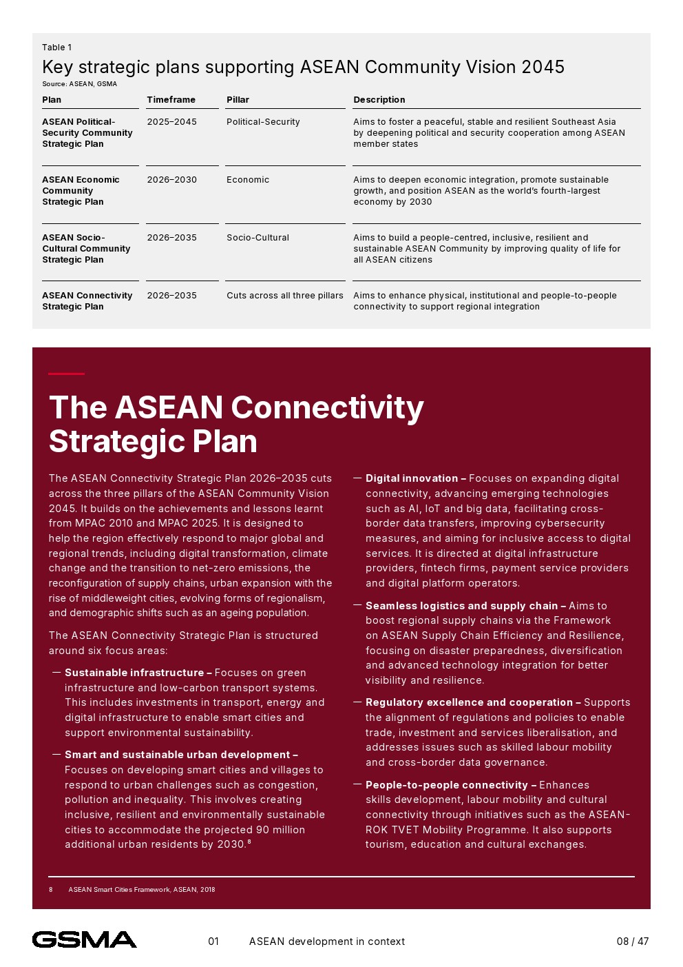 研究报告指出,2025年是关键一年,若干现有发展框架即将结束,新的“2026-2035年东盟互联互通战略计划”正在筹备中。GSMA智库认为,实施报告中的建议对于实现即将出台的计划以及更广泛的“2045年东盟共同体愿景”的雄心至关重要。