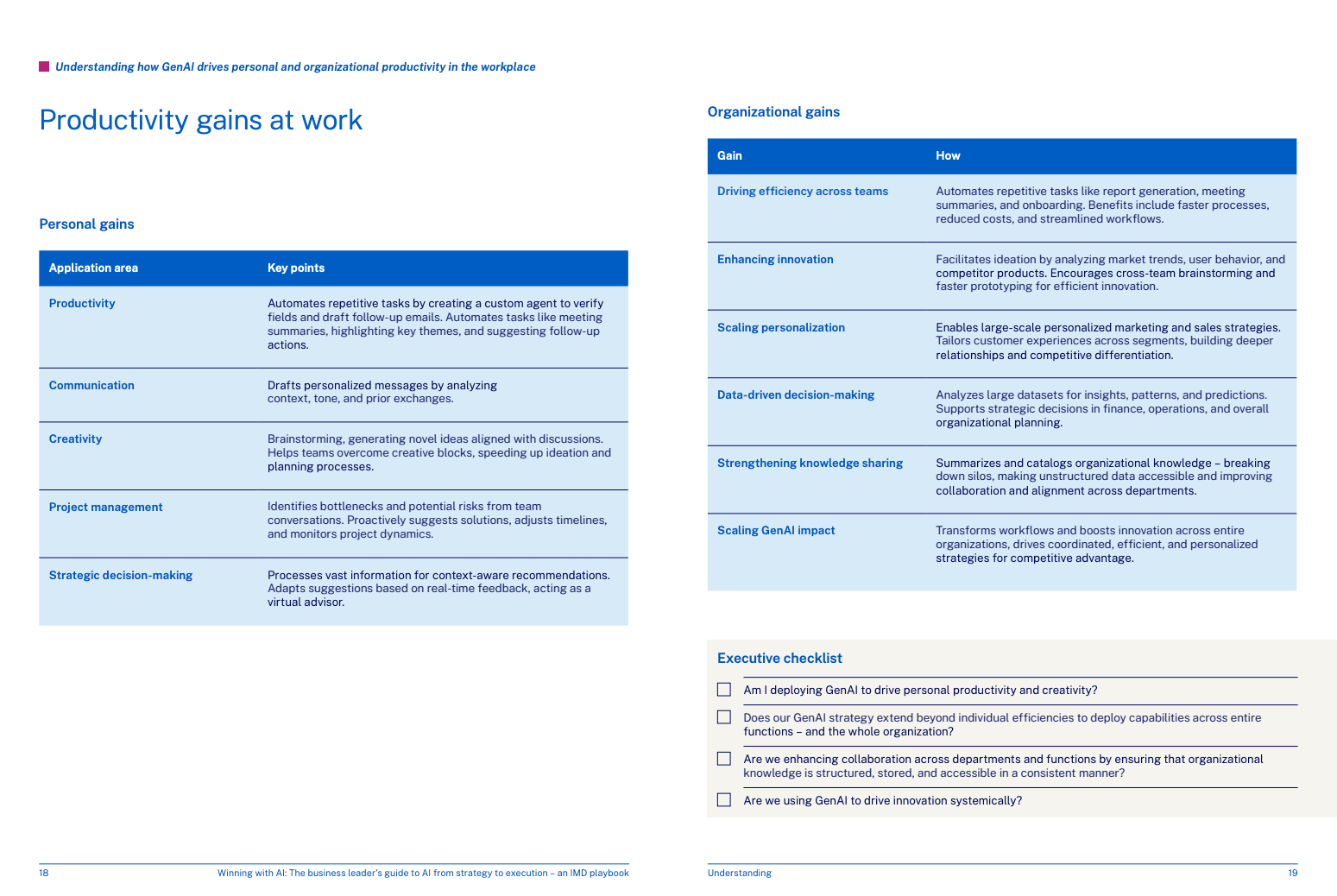 报告强调传统AI注重任务自动化与数据分析,而生成式AI引领工作方式变革,实现认知技能的自动化增强,提升员工生产力和创造力,推动员工从重复性任务中解放,促使低技能员工承担更复杂工作,带来人力资本的升级。