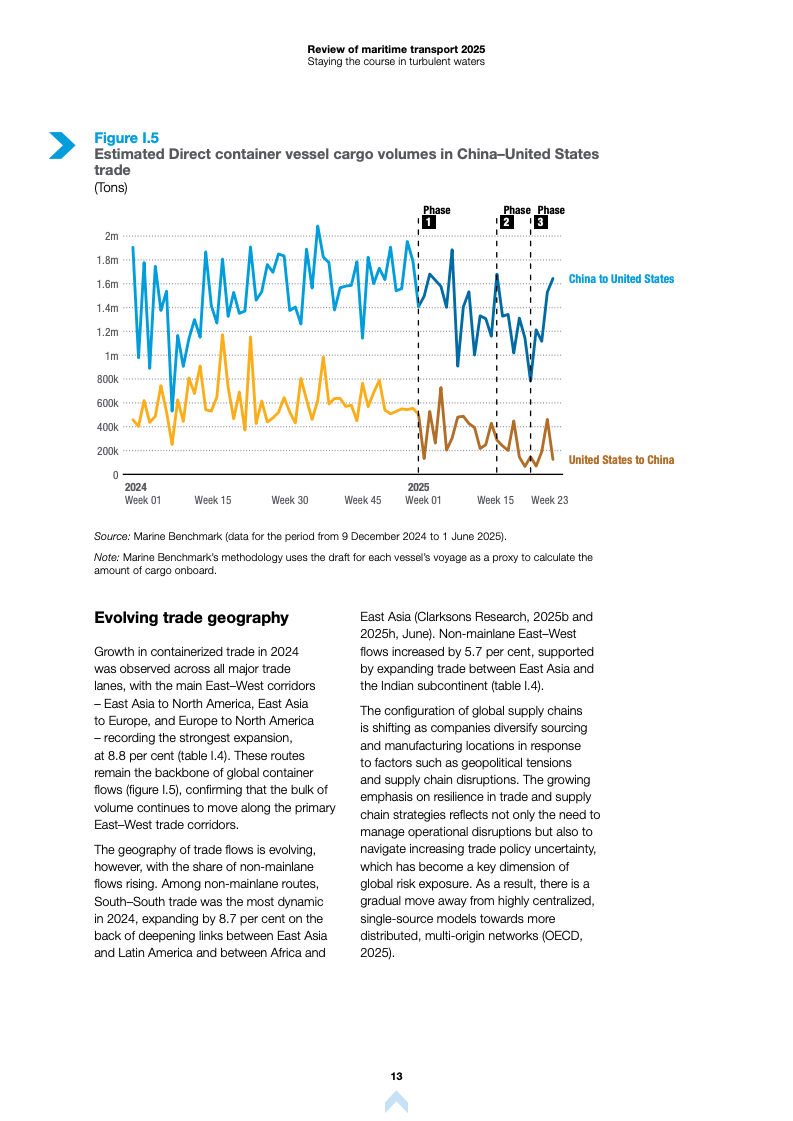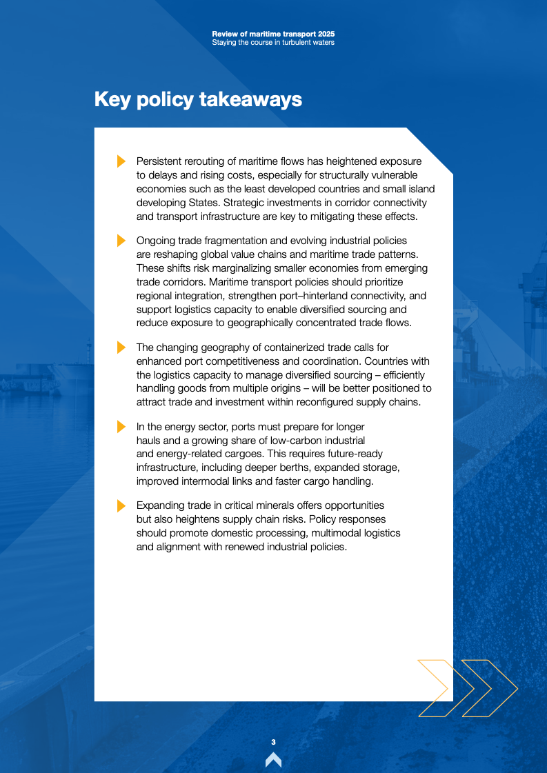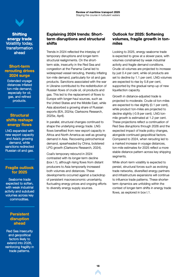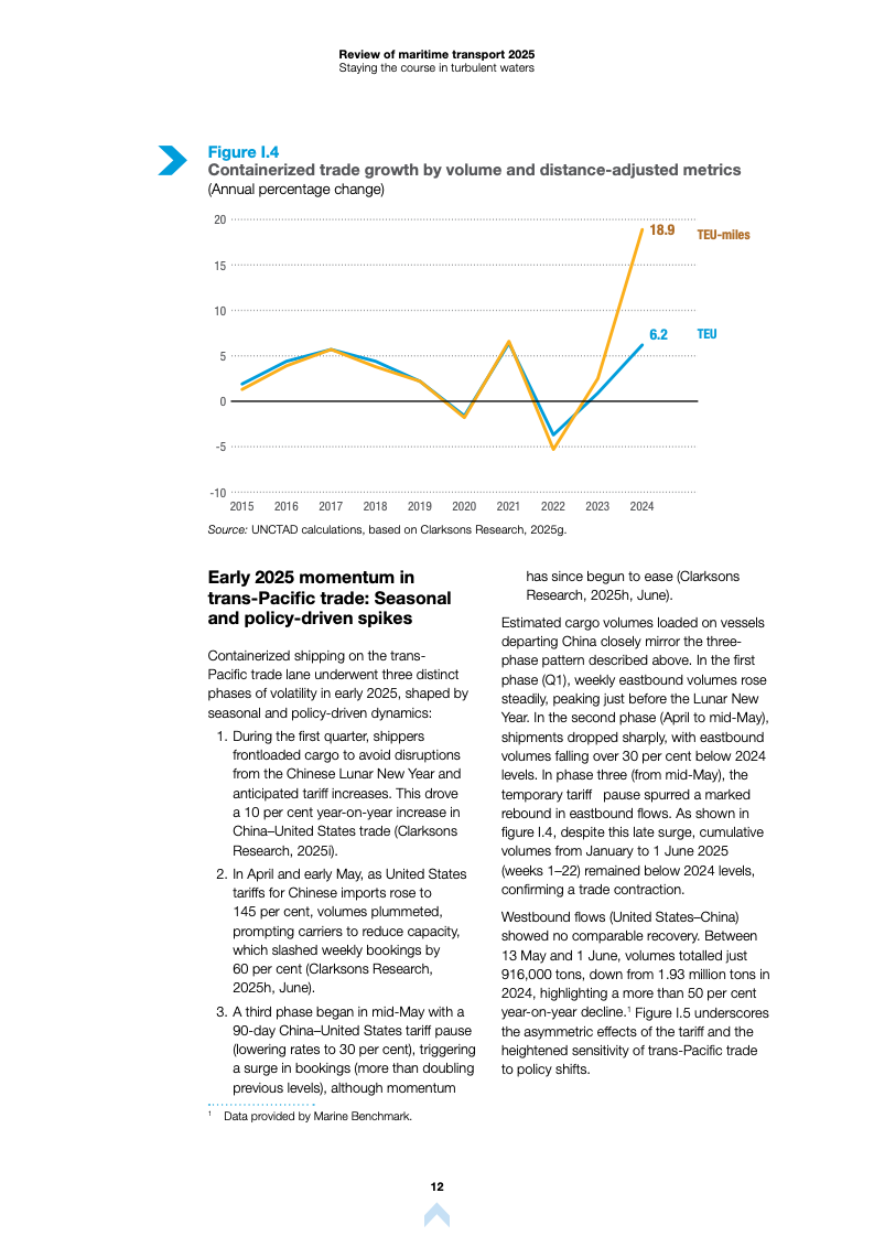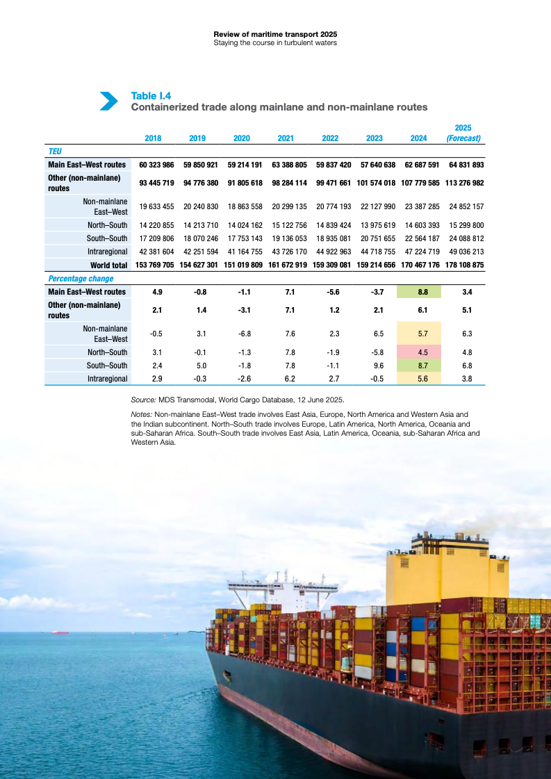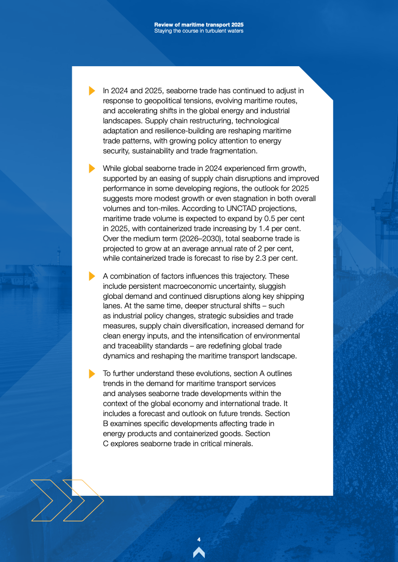 联合国贸发会议发布《2025年海运运输评估报告》,警告全球海运贸易正进入一个增长脆弱、成本上升、充满不确定性的时期。报告预测,继去年稳健扩张之后,2025年全球海运贸易量预计仅增长0.5%,为近年来最慢增速。