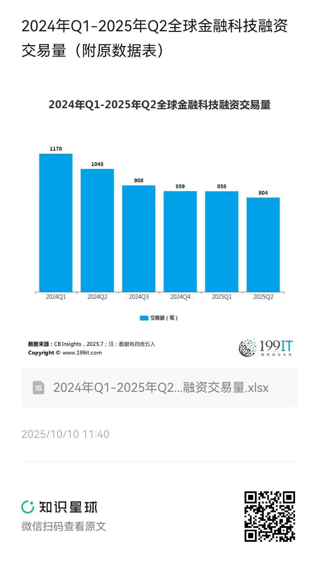 2024年Q1-2025年Q2全球金融科技融资交易量(附原数据表) ​​​