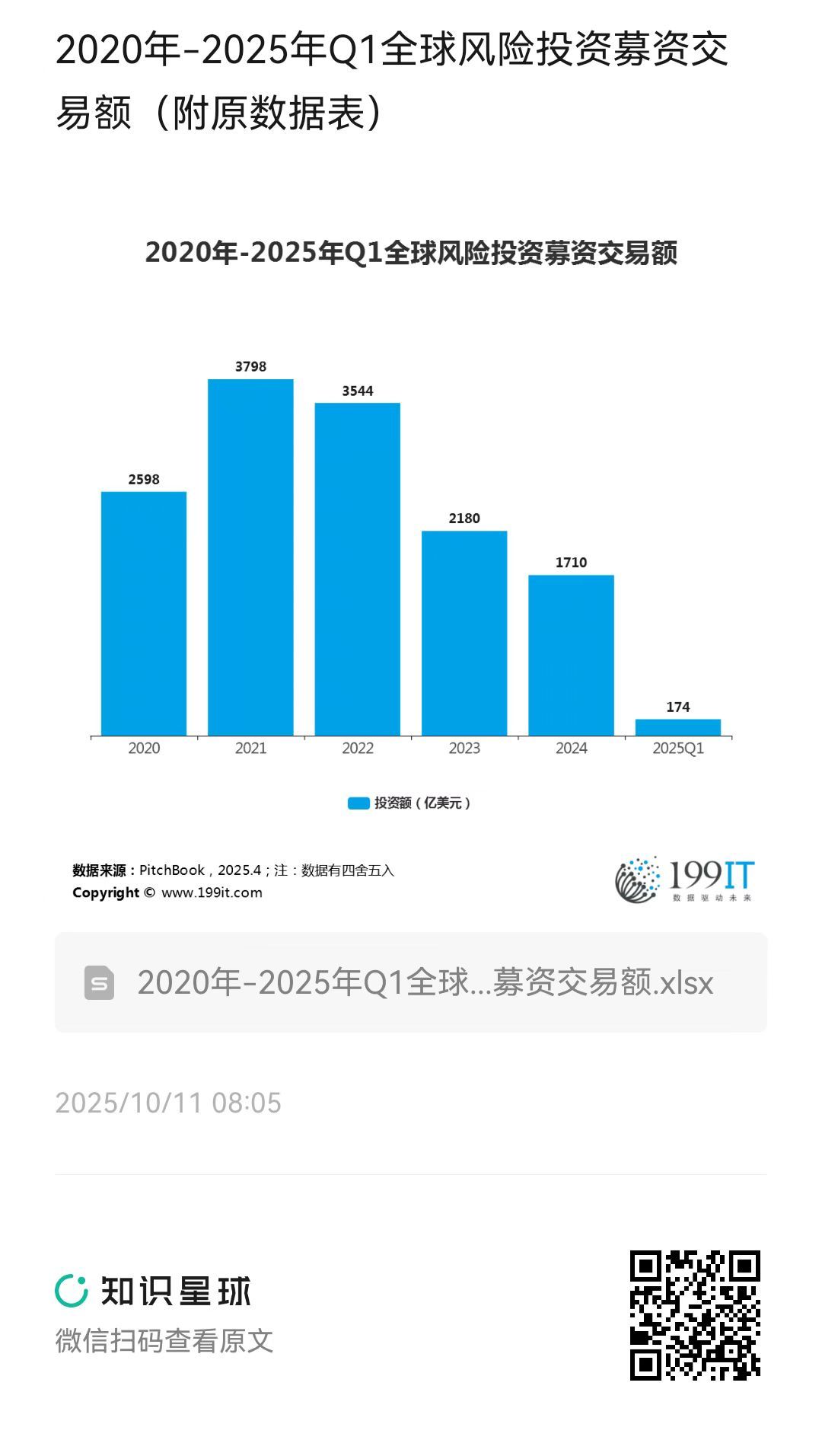 2020年-2025年Q1全球风险投资募资交易额(附原数据表) ​​​