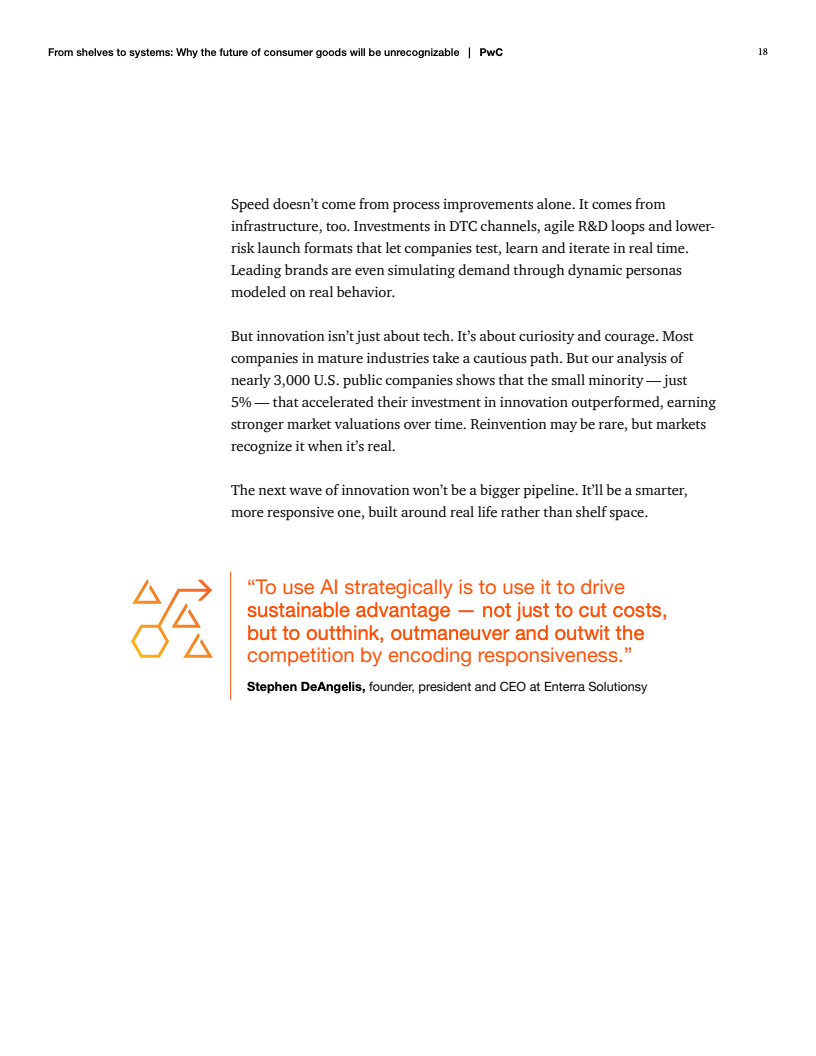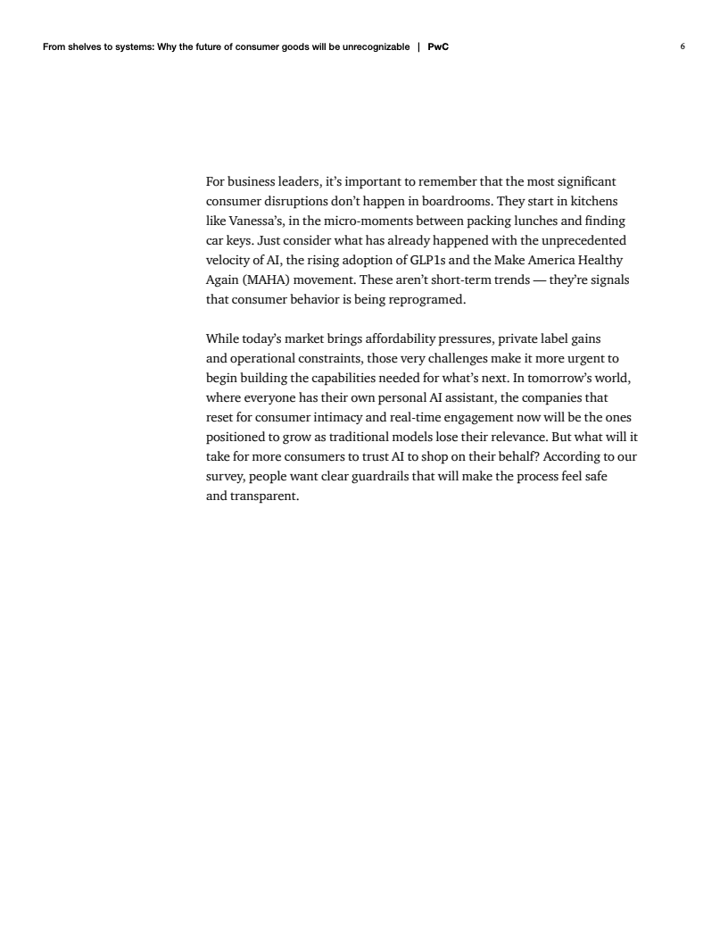 技术层面,文档展示了物联网、人工智能、大数据分析等技术的广泛应用对消费品行业的推动作用。智能感应设备与供应链管理系统的结合,使从采购计划到物流配送的决策实现实时调整。自动化仓储和无人配送示范项目,当前已提高70%的运作效率和降低30%的运营成本。数字化质检和消费者反馈机制同样加强了产品质量管理。