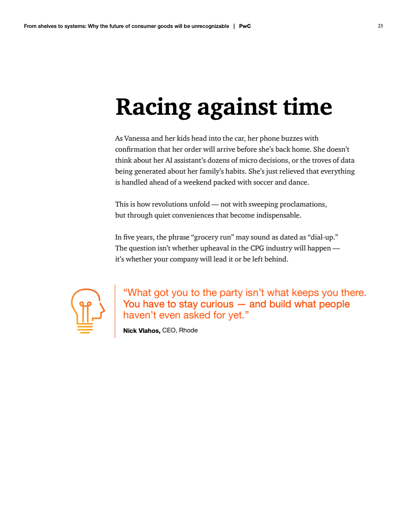 趋势洞察:随着新兴技术的普及和用户需求日益多样化,消费品行业重塑供应链和用户体验体系的能力,将成为竞争的关键。未来,系统化、智能化将成为消费品企业不可逆转的趋势,只有拥抱深度数字化转型,构筑以用户为中心的生态系统,才能保持持续增长并领先市场。