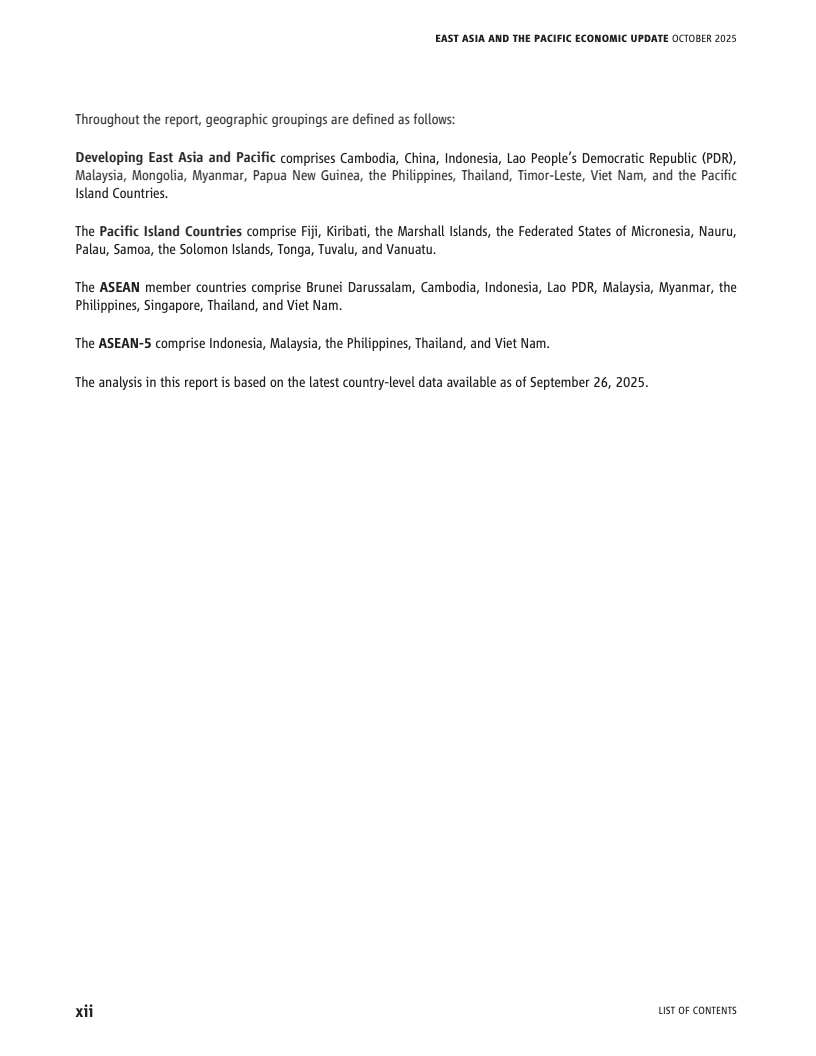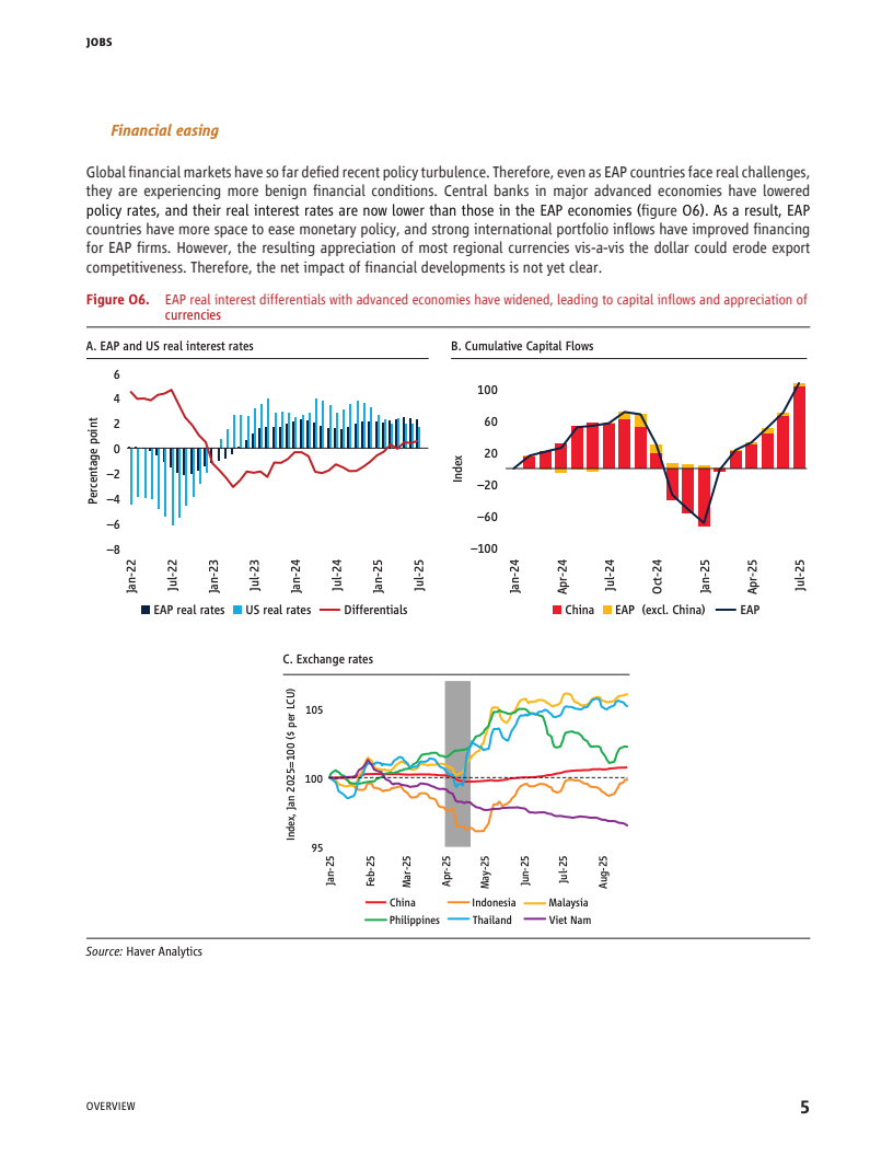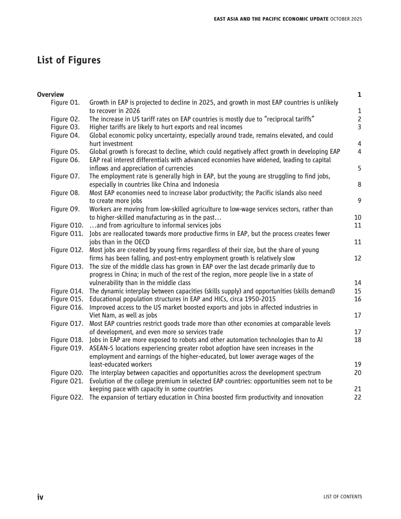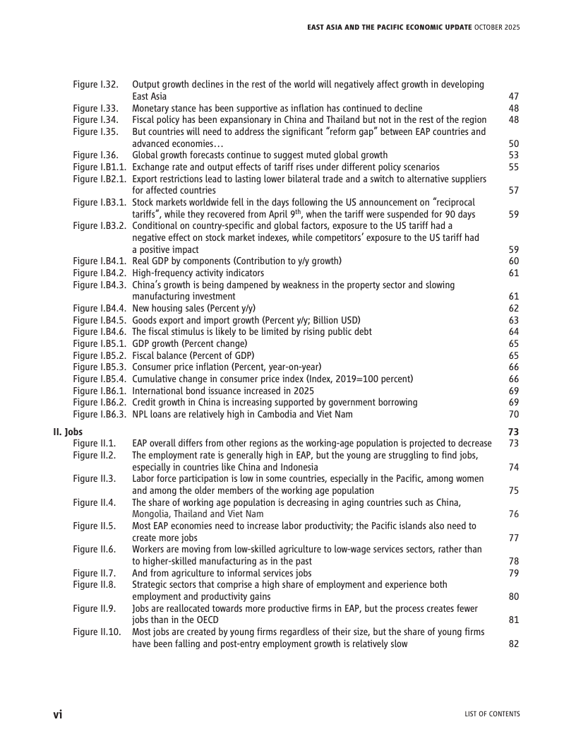 世界银行2025年10月期《东亚与太平洋地区经济半年报》预测,今年该地区经济增速为4.8%,略低于2024年的5.0%。越南以6.6%的增速领先,其次是蒙古(5.9%)和菲律宾(5.3%);中国、柬埔寨和印度尼西亚均预计增长4.8%,太平洋岛国为2.7%,泰国为2.0%。