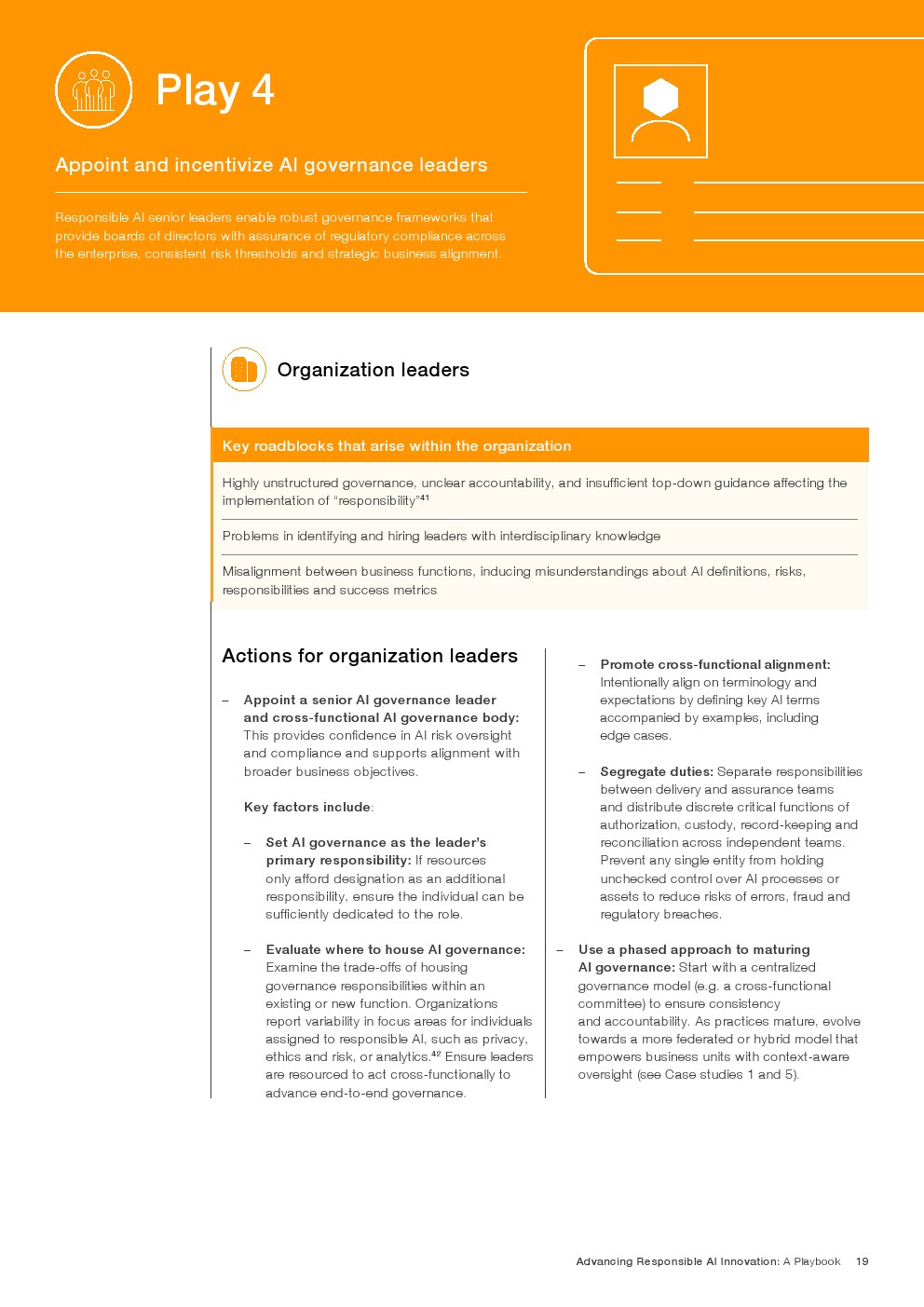 治理与问责方面,报告强调设立专职AI治理高管和跨职能委员会的必要性。缺乏清晰责任分配,会放大供应链风险。案例显示,将AI治理从技术职能提升至董事会与高管层,是企业迈入成熟阶段的关键条件。