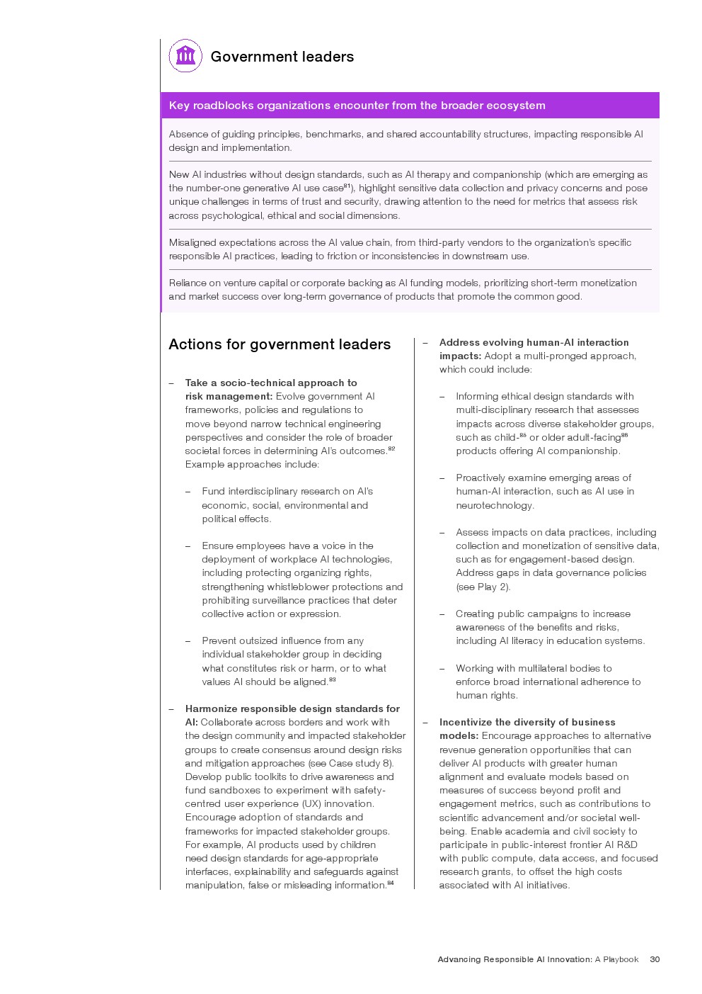 在趋势层面,报告判断,随着代理型AI和跨系统协作加速,负责任AI将从“原则与流程”演进为“技术内嵌型能力”。率先将治理机制、监测工具和人才培养嵌入AI全生命周期的组织,将在未来监管趋严和技术复杂化背景下,获得更高的战略韧性与长期竞争优势。