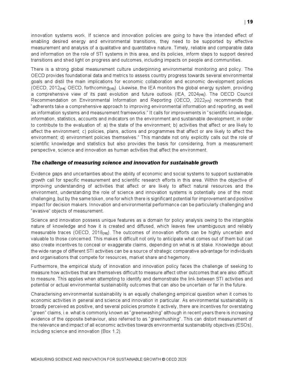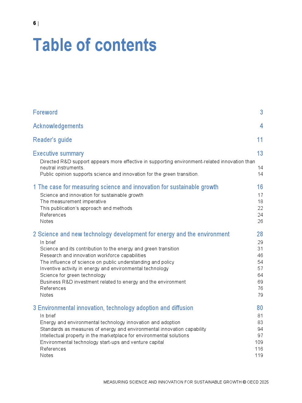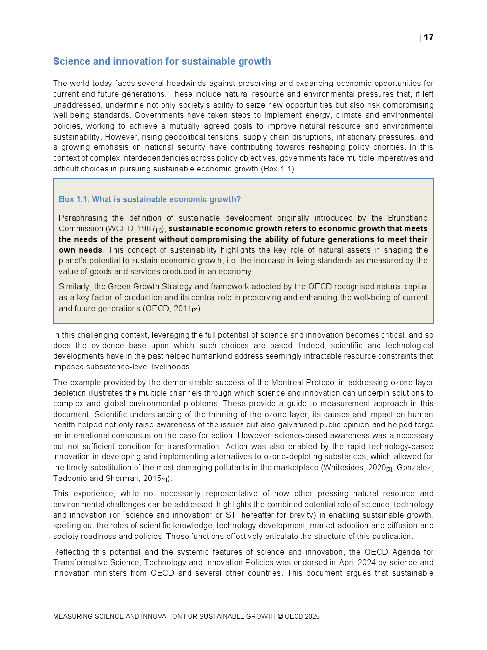 OECD发布了“衡量科学和创新促进可持续增长”。科学、技术与创新(STI)的变革力量对于在应对气候变化、污染和生物多样性丧失等全球重大环境挑战的同时扩展经济福祉是必要的。然而,为有效利用和引导这种力量,政策制定者需要适合的衡量标准,以捕捉科学和创新的多层面贡献、不同行为者所扮演的角色以及相关政策的影响。报告提供了关于科学和创新对资源与环境可持续性作用的新且全面的证据。它利用现有统计数据和新开发的数据库、指标及分析,绘制关键趋势和结构性问题,比较各国在这一重要行业的能力,为决策提供信息。收集到的证据得出以下见解: