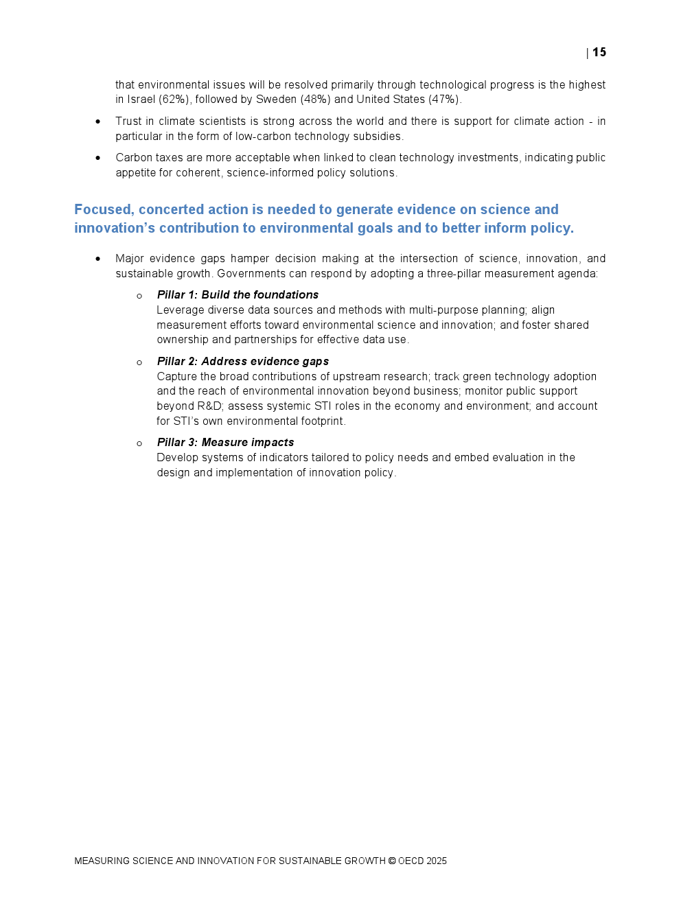 需要采取专注、一致的行动来生成关于科学和创新对环境目标贡献的证据,并为政策提供更好的信息。