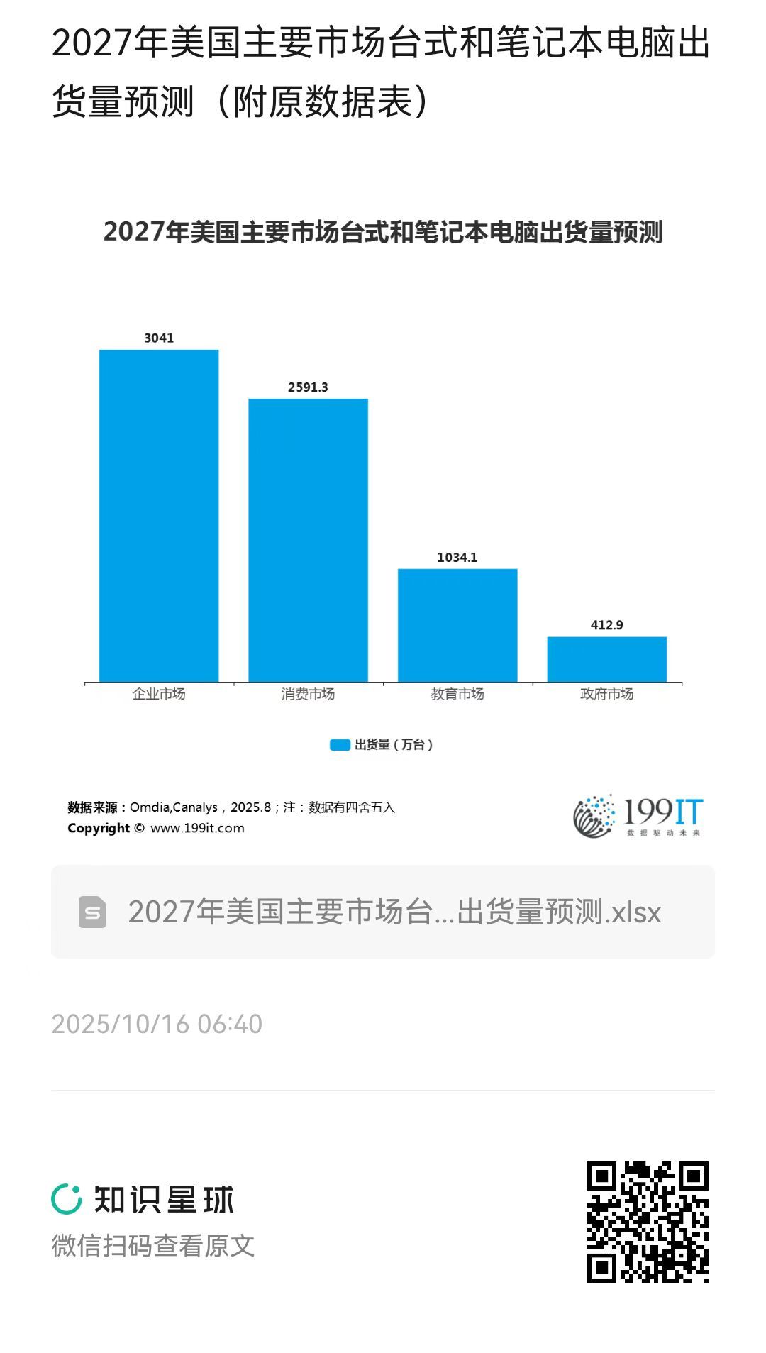 - 2027年美国主要市场台式和笔记本电脑出货量同比预测(附原数据表)
