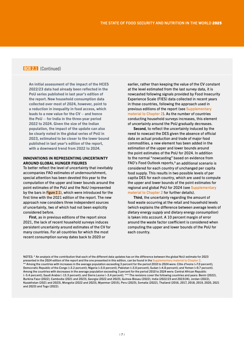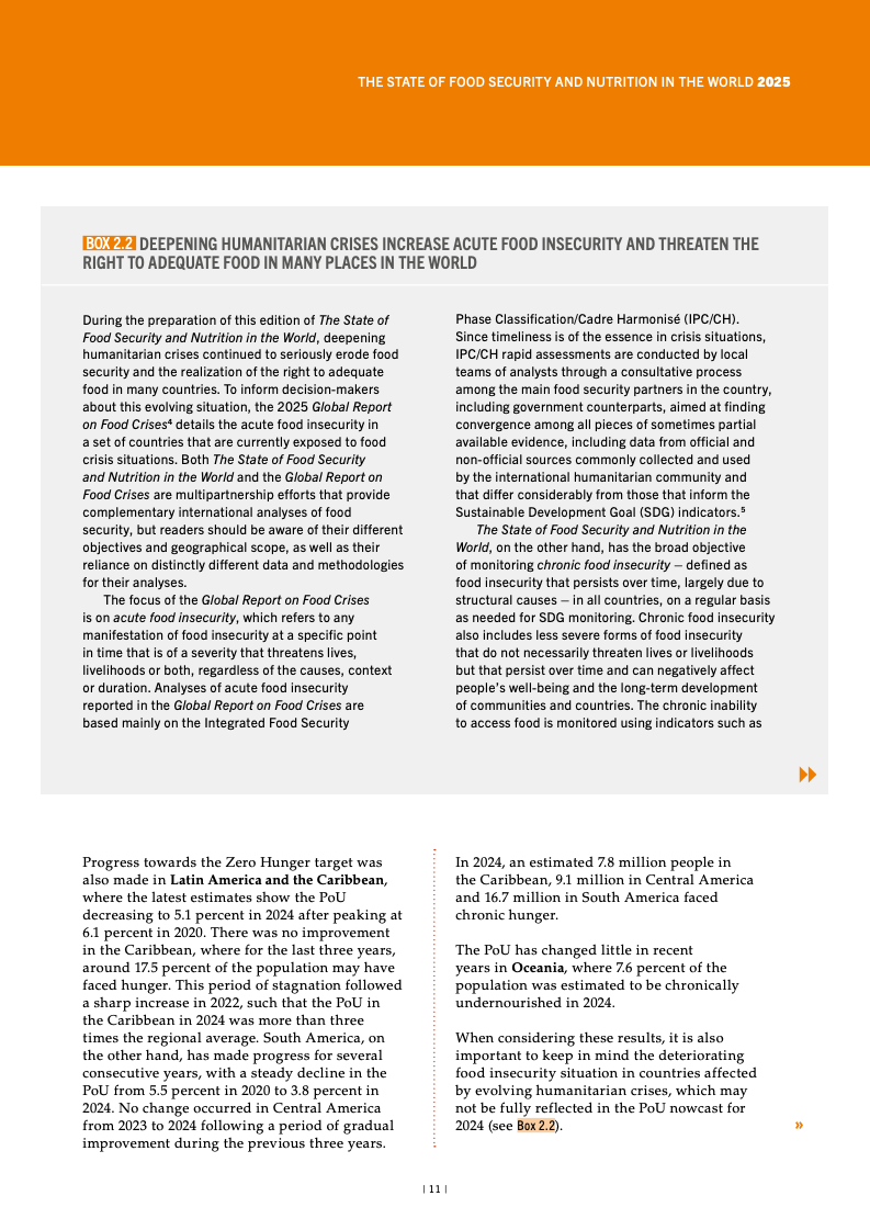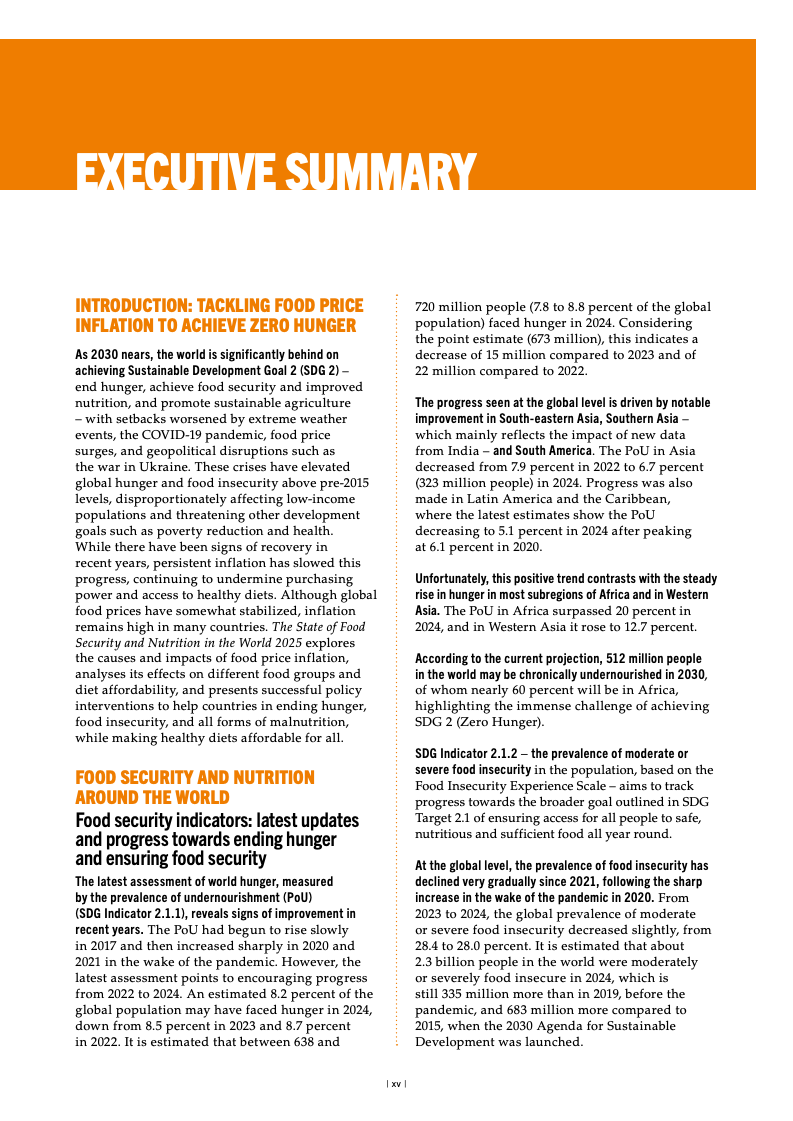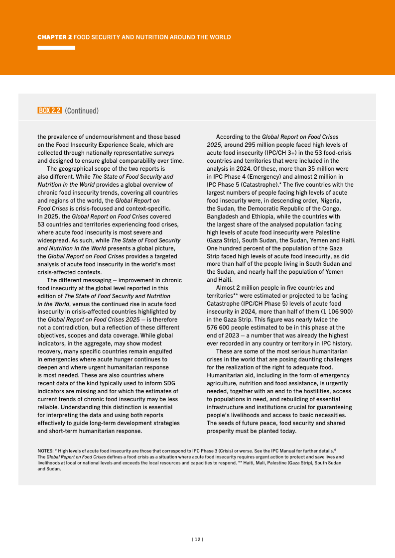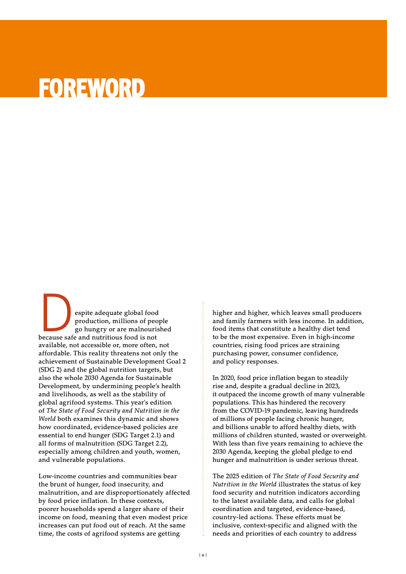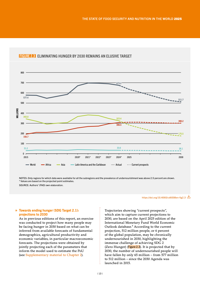 全球粮食安全形势依然严峻。根据联合国粮农组织的最新数据,2024年全球饥饿人口比例为8.2%,相当于每12人中就有1人面临饥饿,总数约7亿人。尽管该比例较2022年的8.7%略有下降,但整体基数仍然庞大,且有近23亿人面临中度或重度的粮食不安全问题。