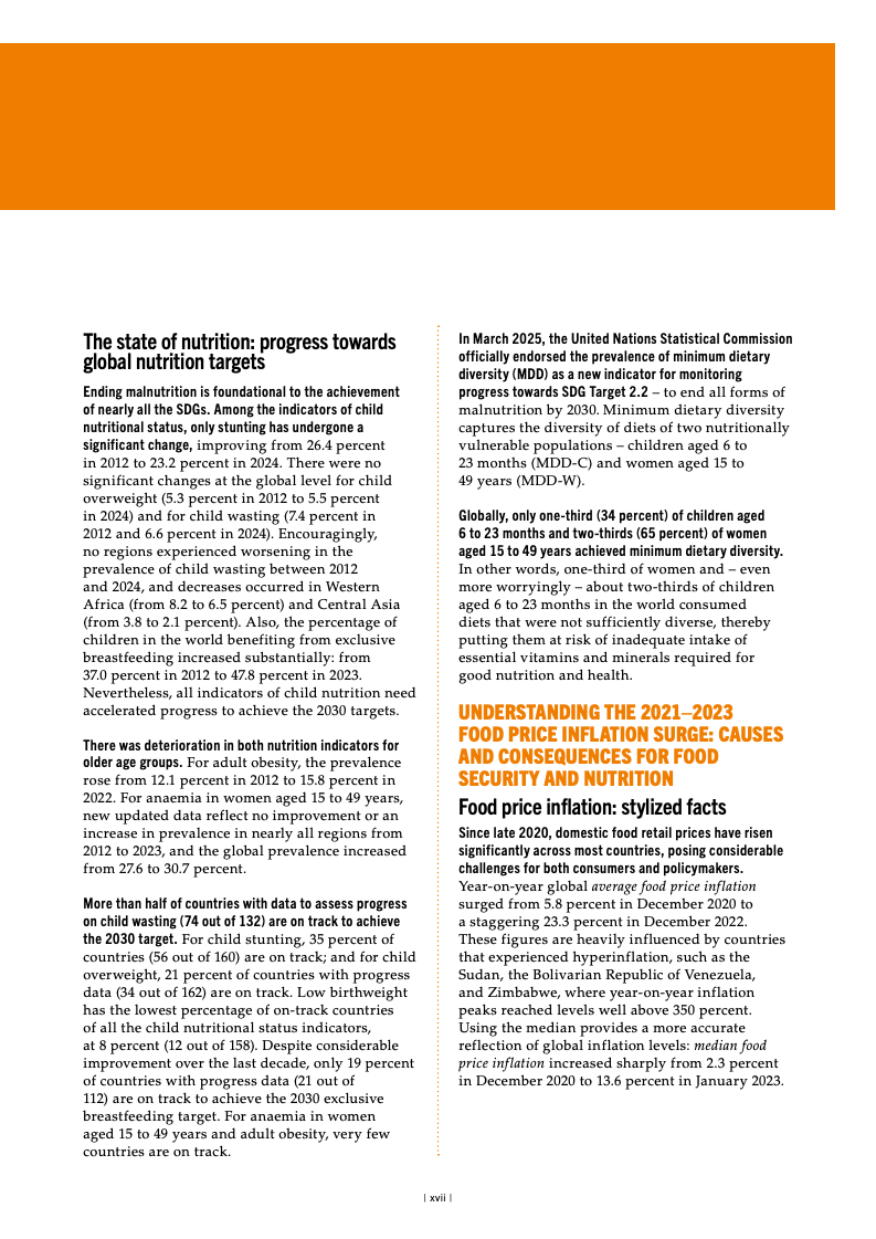 多重因素加剧了粮食系统的脆弱性。自新冠疫情以来,全球粮食价格维持在疫情前三倍的高位。同时,气候变化对农业生产构成直接威胁,预计到2050年可能导致农作物产量下降35%,进而使脆弱群体的营养不良比例增加20%。地缘政治冲突与持续通胀进一步放大了这些风险。