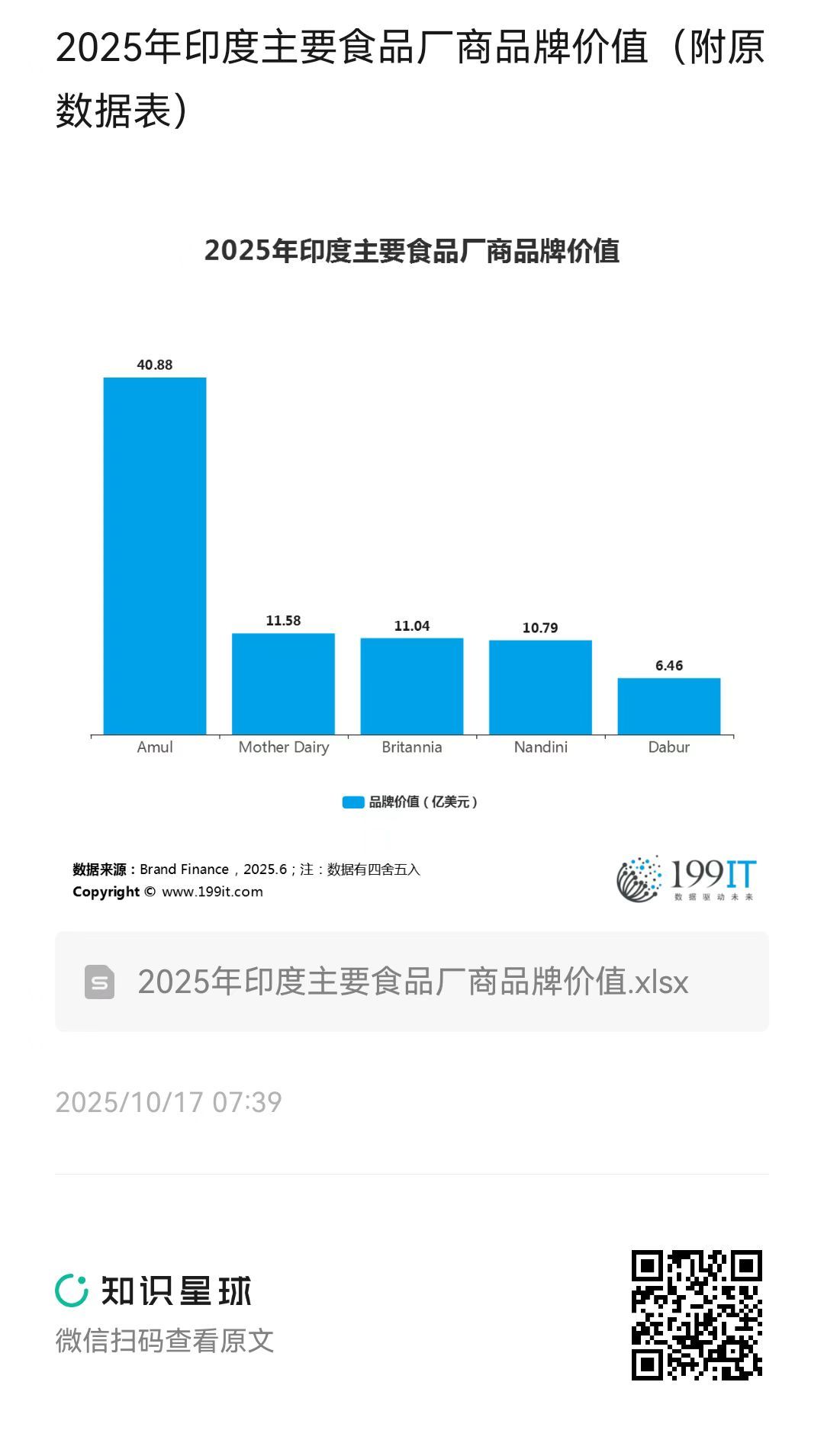2025年印度主要食品厂商品牌价值(附原数据表) ​​​