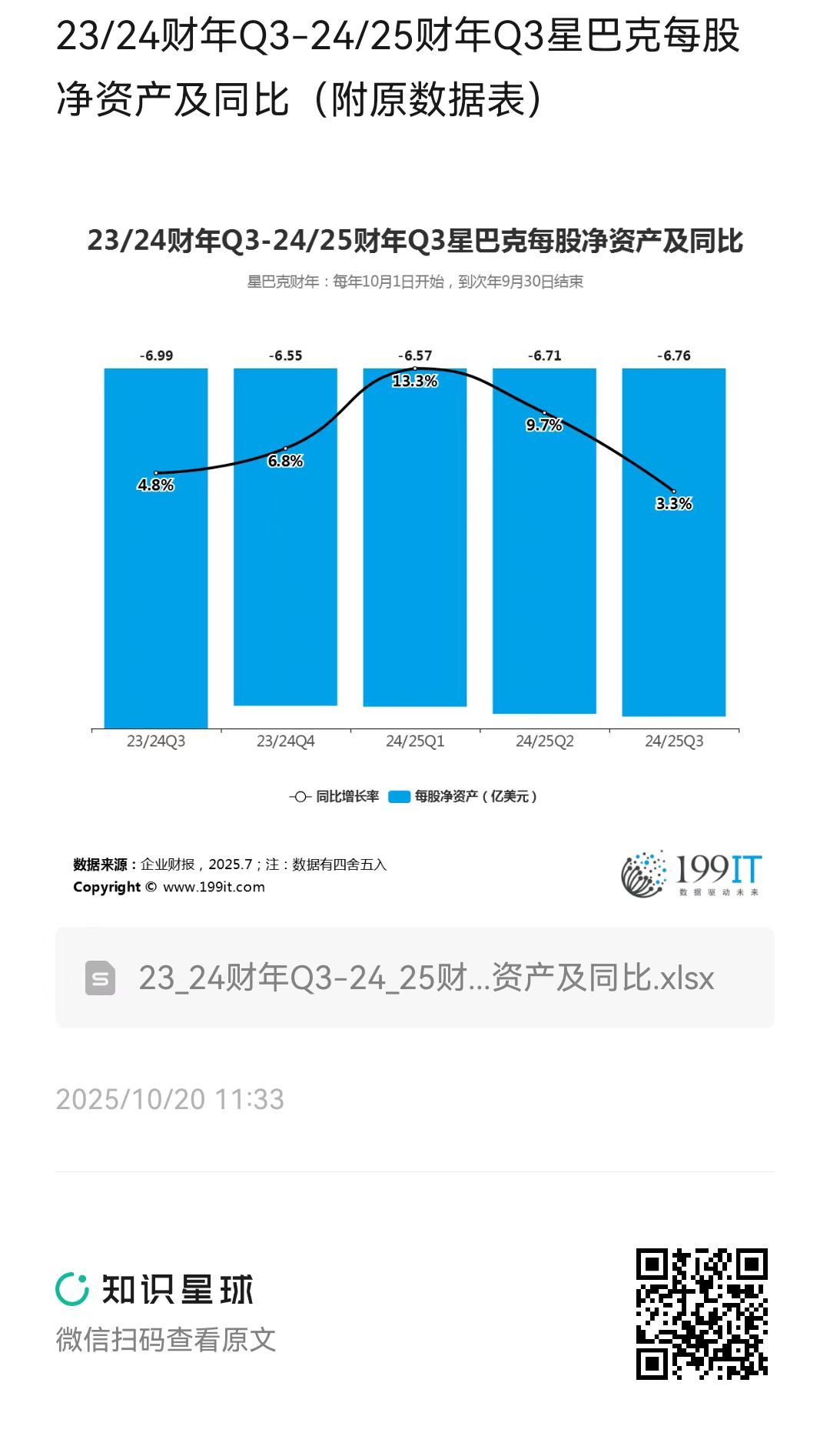 23/24财年Q3-24/25财年Q3星巴克每股净资产及同比(附原数据表) ​​​