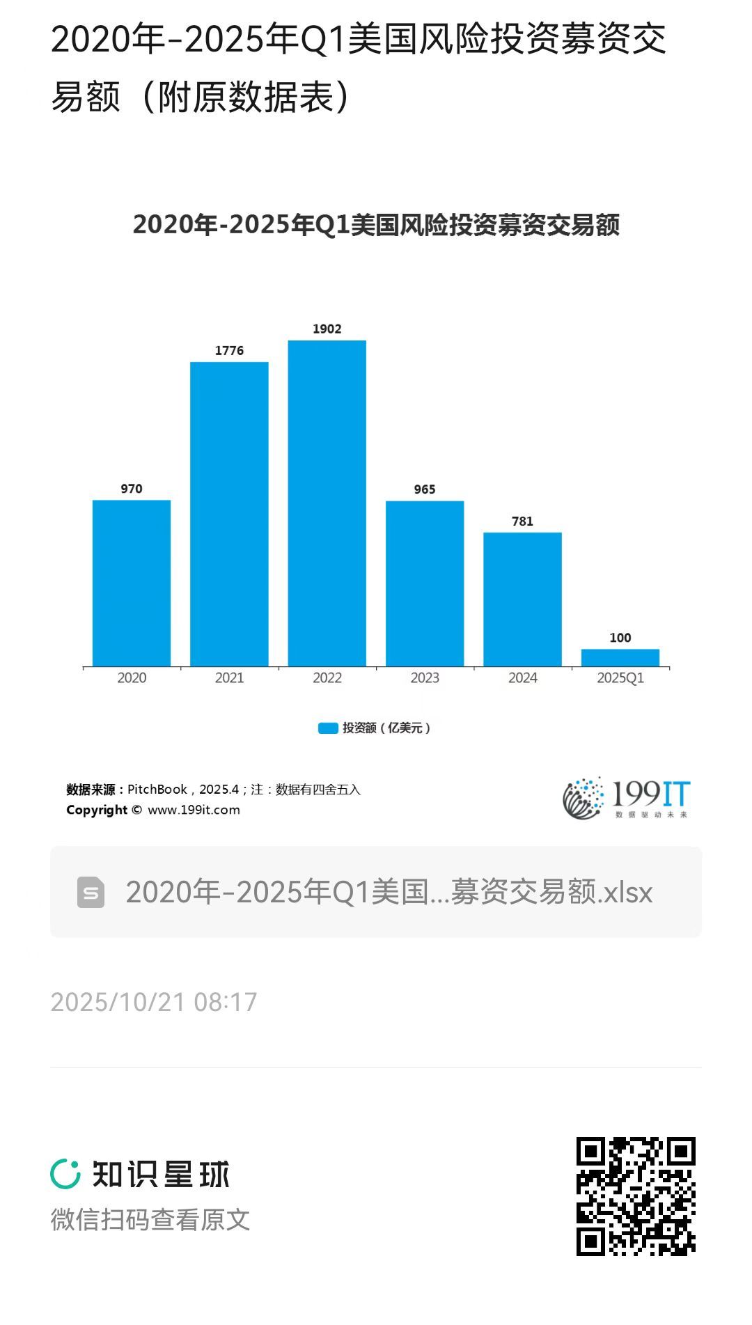2020年-2025年Q1美国风险投资募资交易额(附原数据表) ​​​