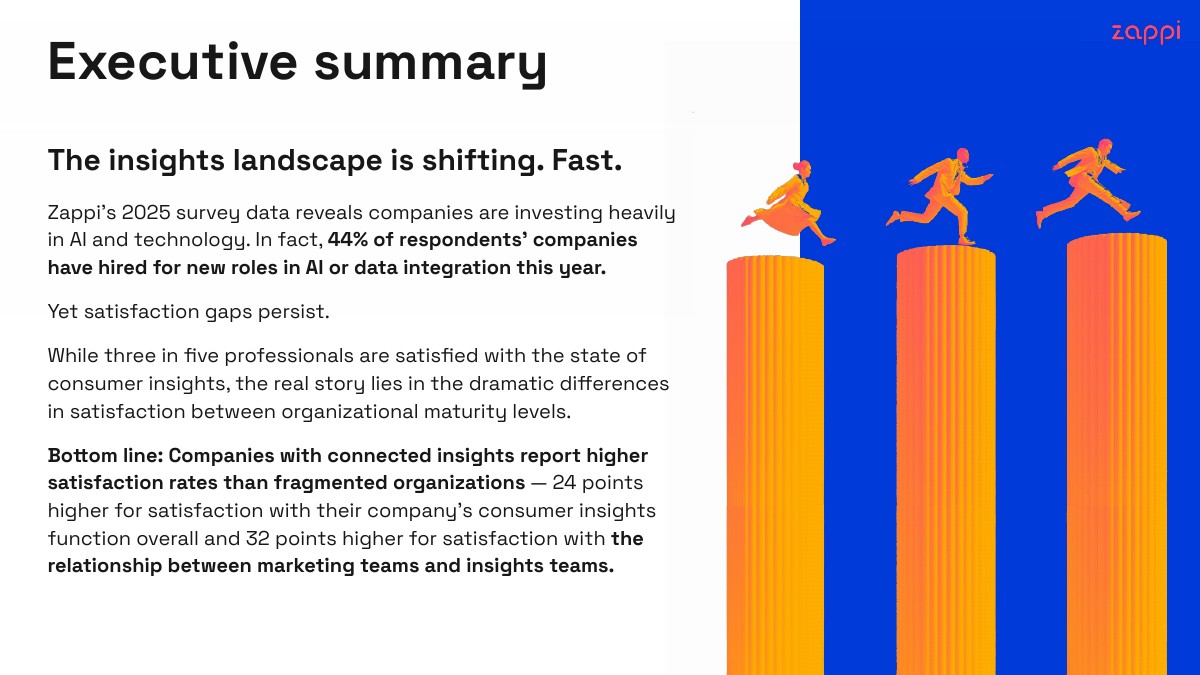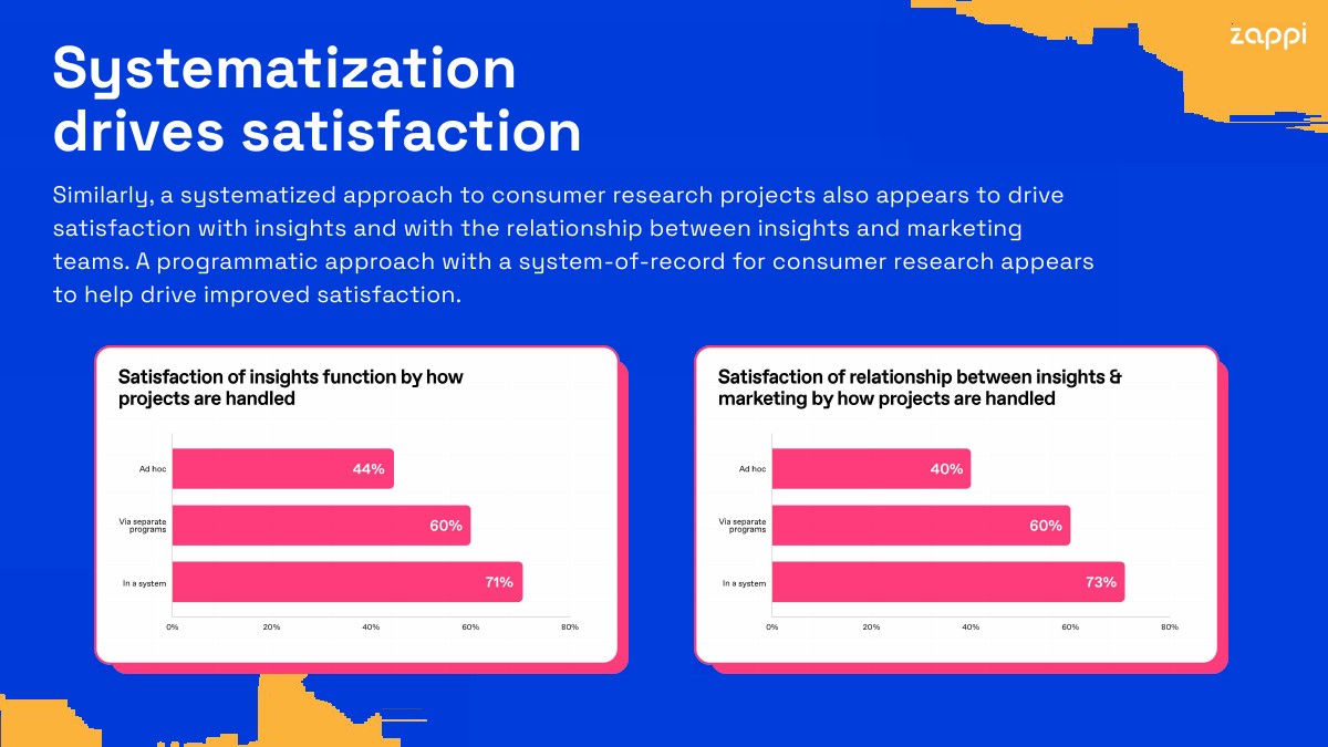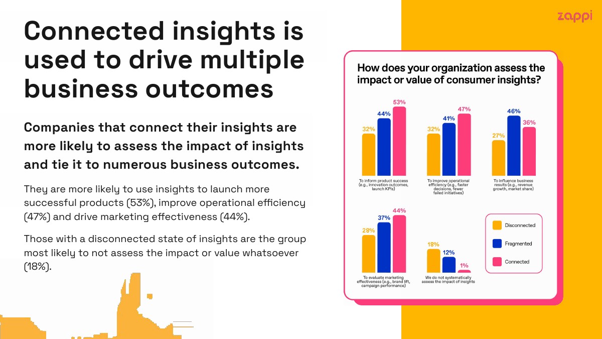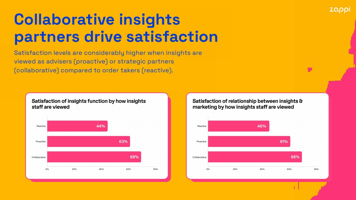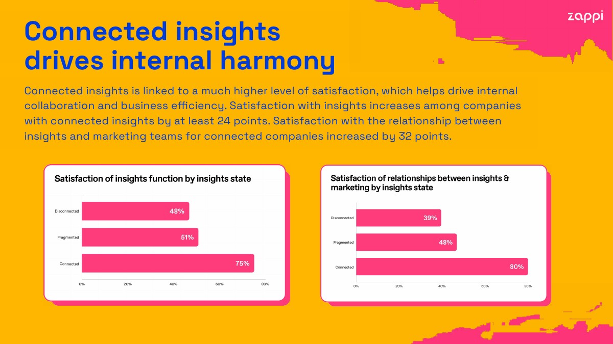 毫不意外的是,那些拥有连接洞察的人在其工作的各个方面都表现出比其他人群更高的满意度,范围从对洞察功能的总体满意度,到对洞察与营销之间关系的满意度,以及对洞察人员如何看待的满意度。