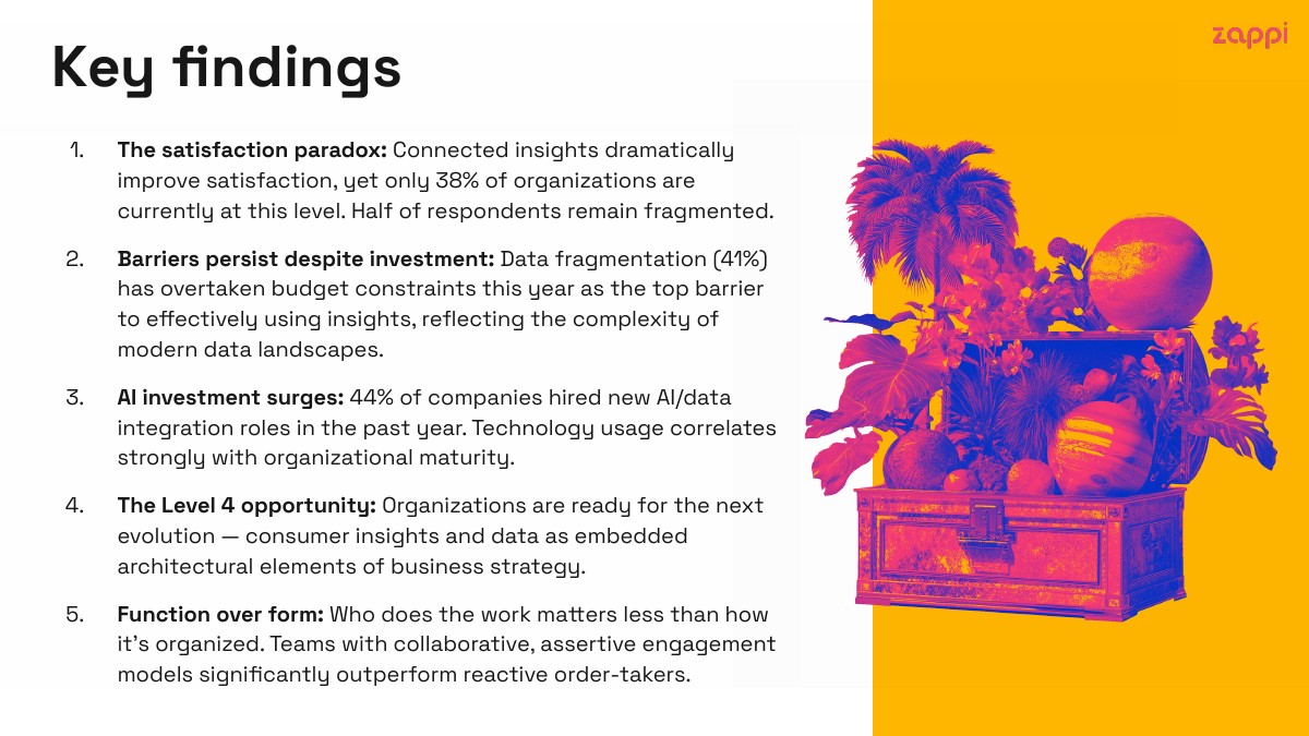 根据Zappi的一项新研究“互联洞察势在必行”,企业中的消费者数据仍然相当分散。在接受调查的洞察和营销专业人士中,只有不到四成的人(38%)表示,他们公司的消费者反馈、数据和洞察状态是相互连通的,即他们以战略性的方式将所有消费者数据集中在一个系统中。
