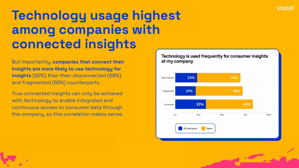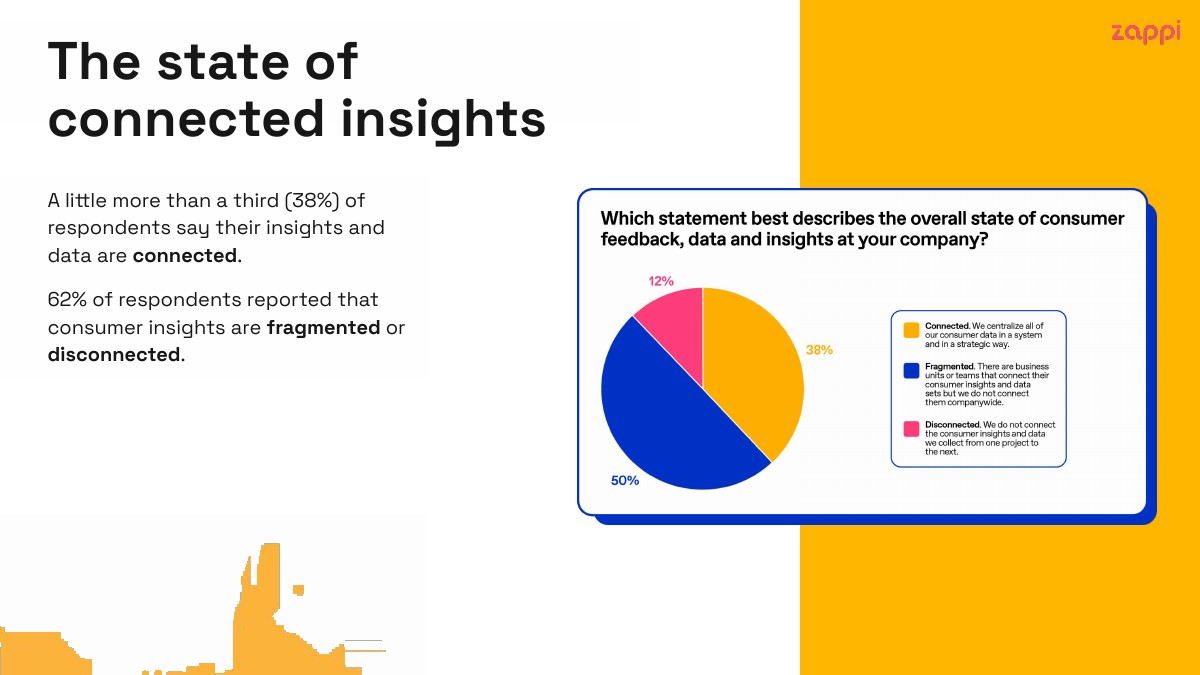 对于最大比例的受访者(50%)来说,洞察和数据的整体状态最好被描述为碎片化,即存在某些业务单元或团队连接了他们的消费者洞察和数据集,但并未在全公司范围内进行连接。