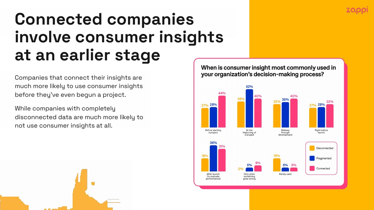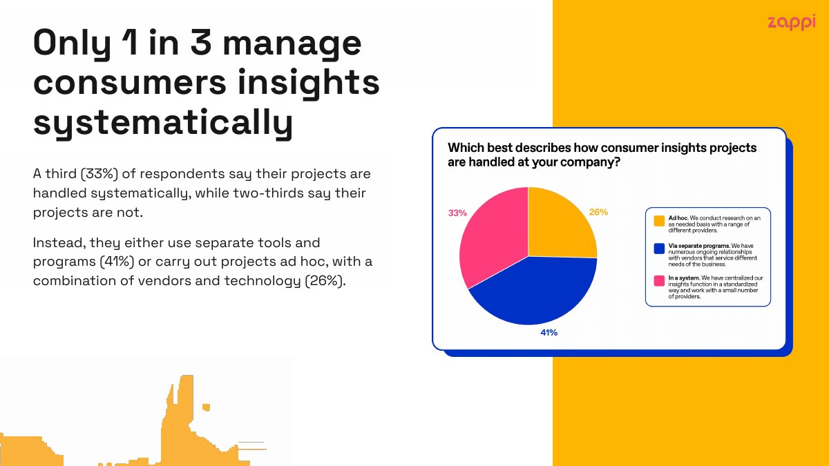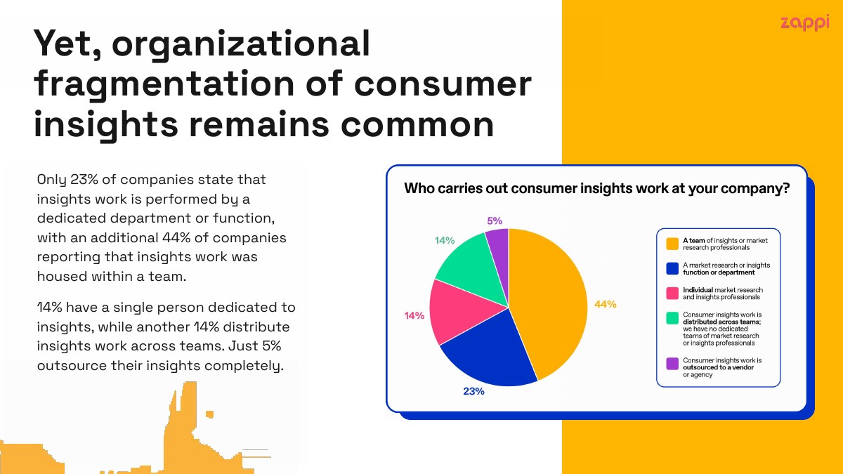 除了碎片化的数据之外,营销和洞察专业人士还表示,将洞察转化为可执行战略方面的挑战也阻碍了他们有效利用消费者洞察。这是一个长期存在的问题,部分原因在于数据孤岛和组织问题。