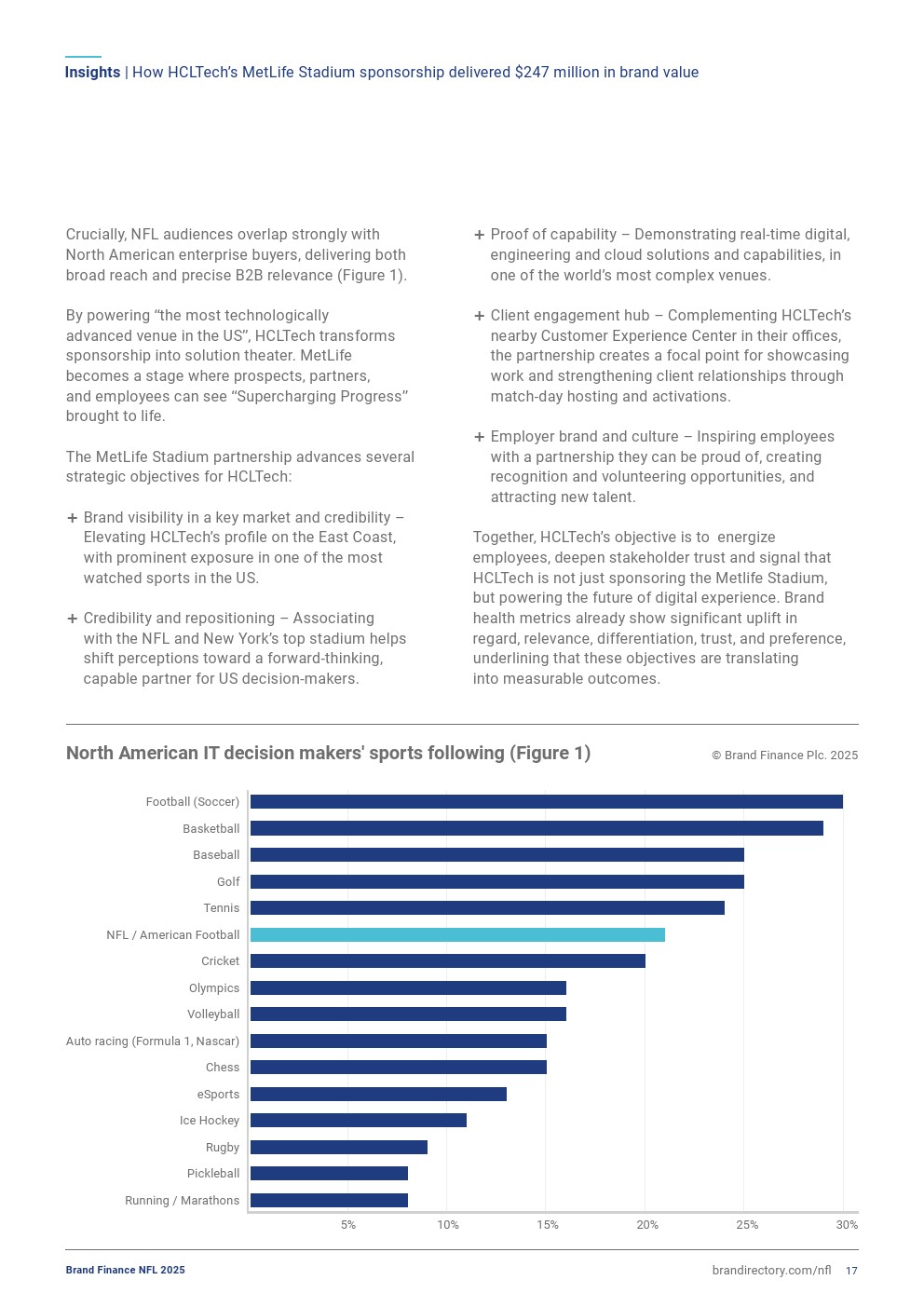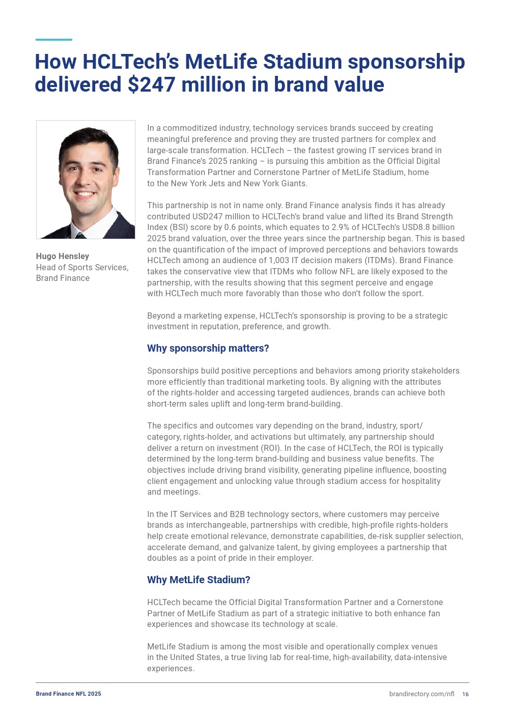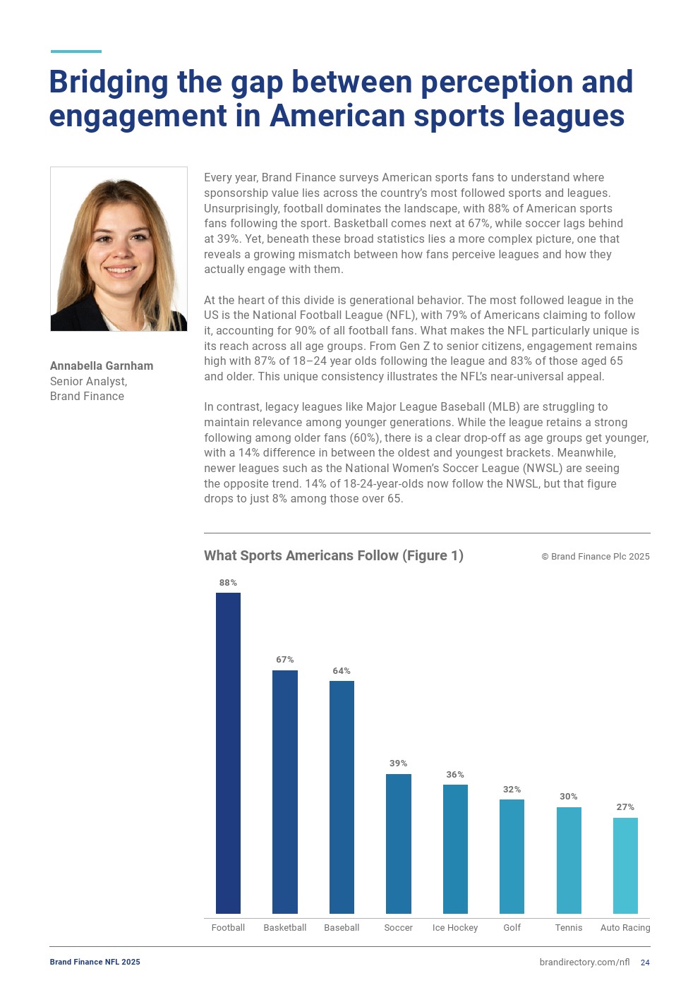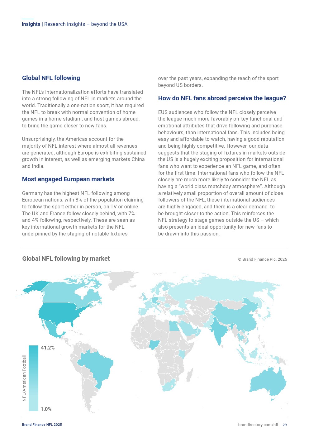 这不仅反映了其收入规模,也体现了NFL工资帽所带来的盈利优势。尽管企业价值和品牌价值衡量的是不同方面,但两者都凸显了牛仔队的商业实力在多大程度上由其品牌支撑,从无与伦比的赞助吸引力到庞大而忠诚的粉丝群。因此,尽管场上表现较弱,牛仔队的传统、商业规模和全球形象确保了其在排名中保持榜首位置。