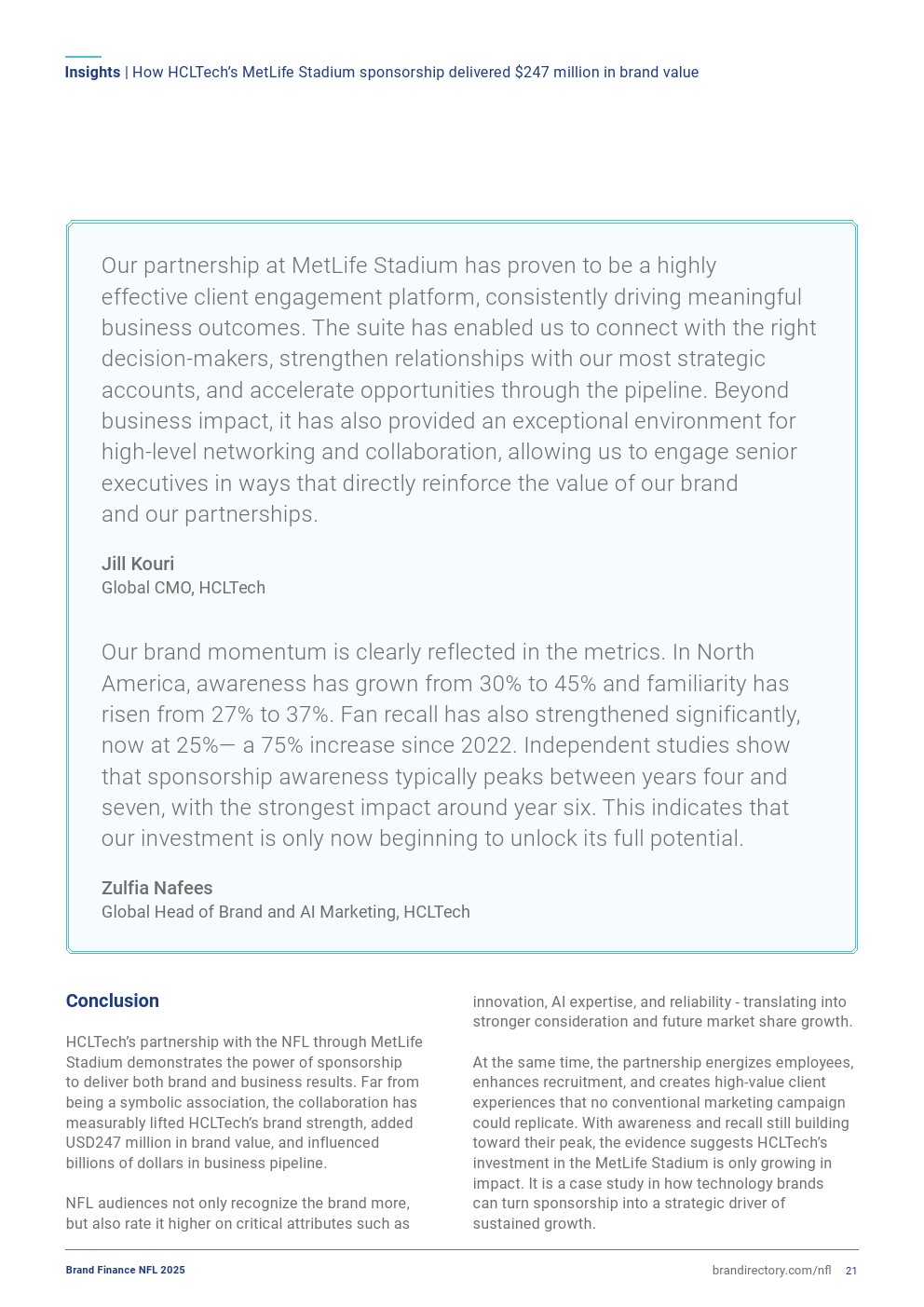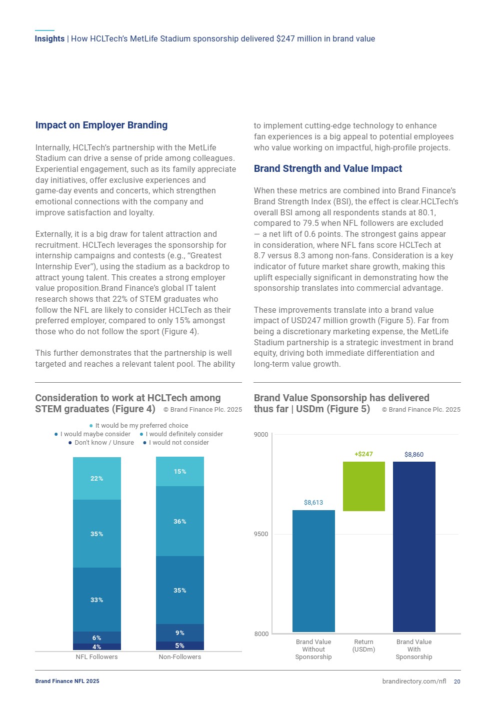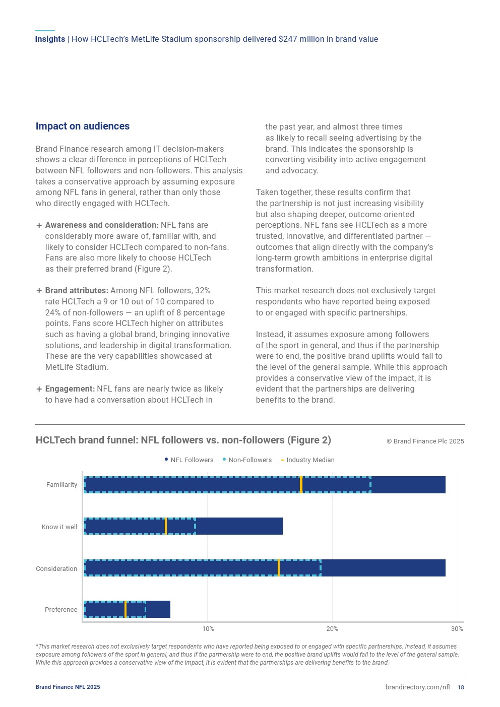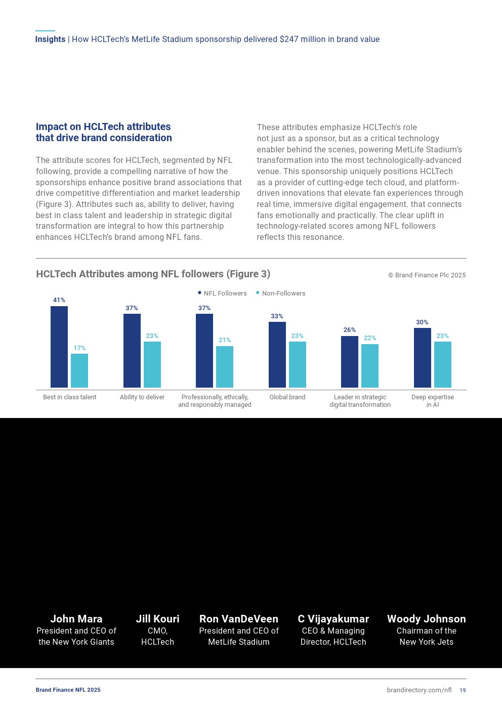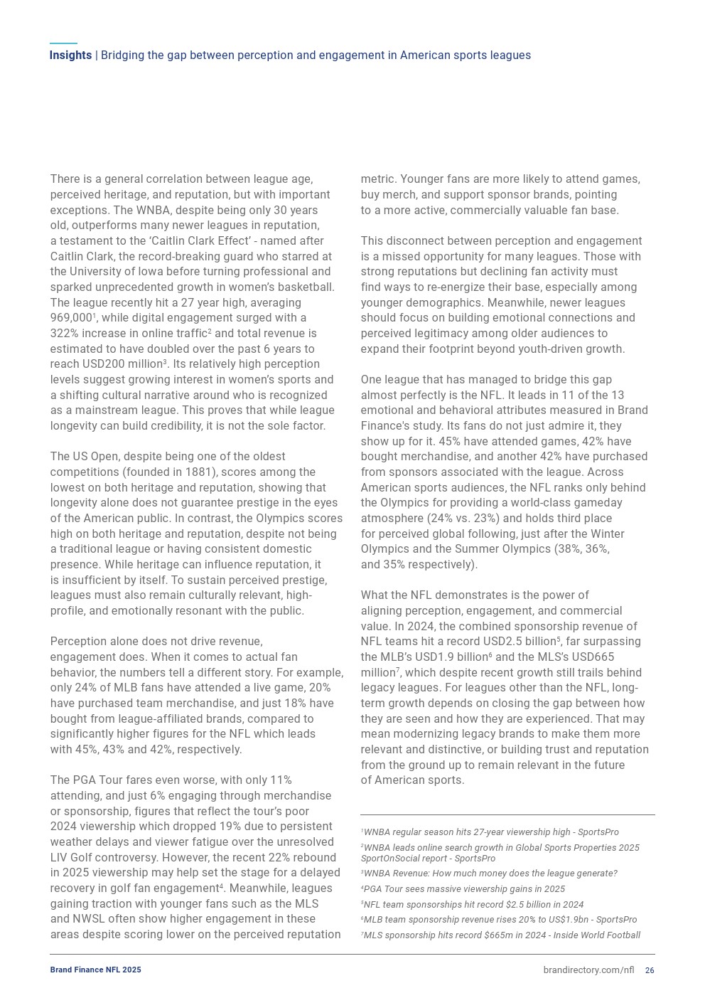这不仅反映了其收入规模,也体现了NFL工资帽所带来的盈利优势。尽管企业价值和品牌价值衡量的是不同方面,但两者都凸显了牛仔队的商业实力在多大程度上由其品牌支撑,从无与伦比的赞助吸引力到庞大而忠诚的粉丝群。因此,尽管场上表现较弱,牛仔队的传统、商业规模和全球形象确保了其在排名中保持榜首位置。