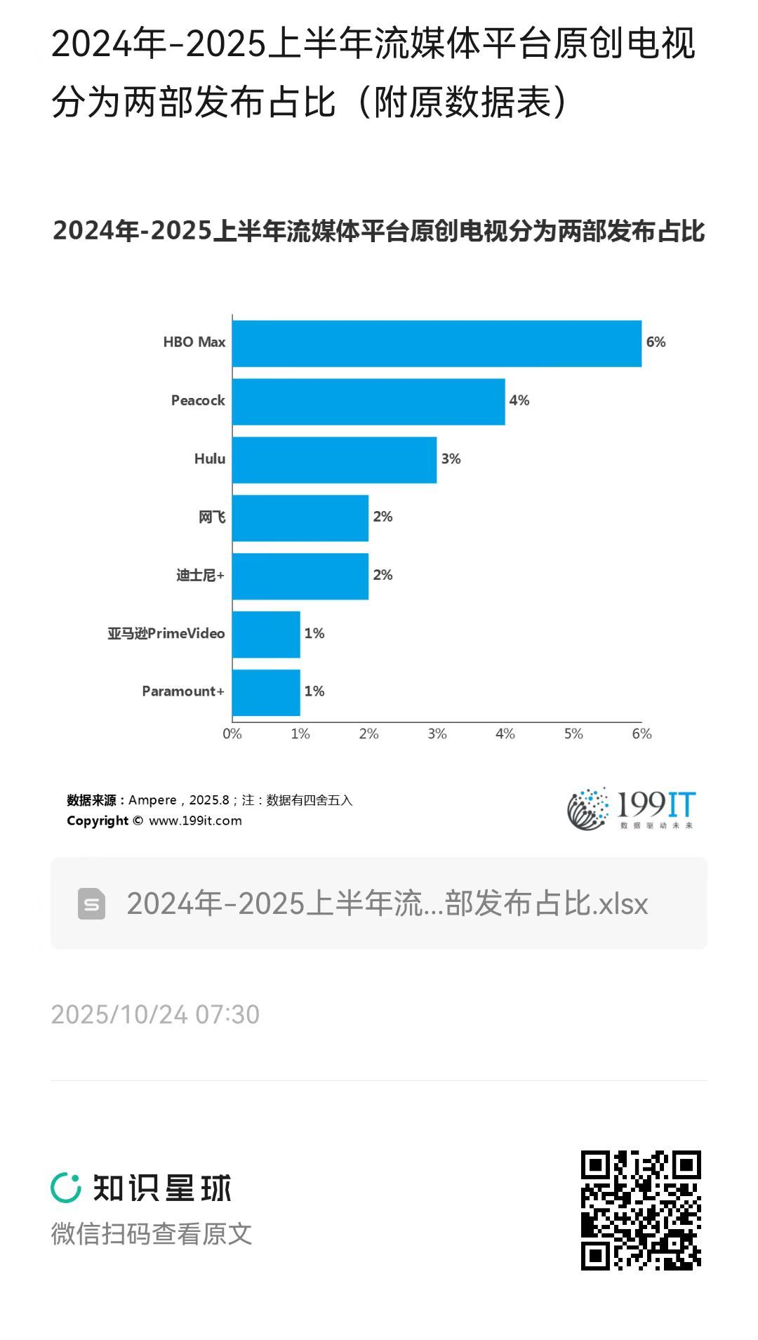 - 2024年-2025上半年流媒体平台原创电视每周更新发布占比(附原数据表)